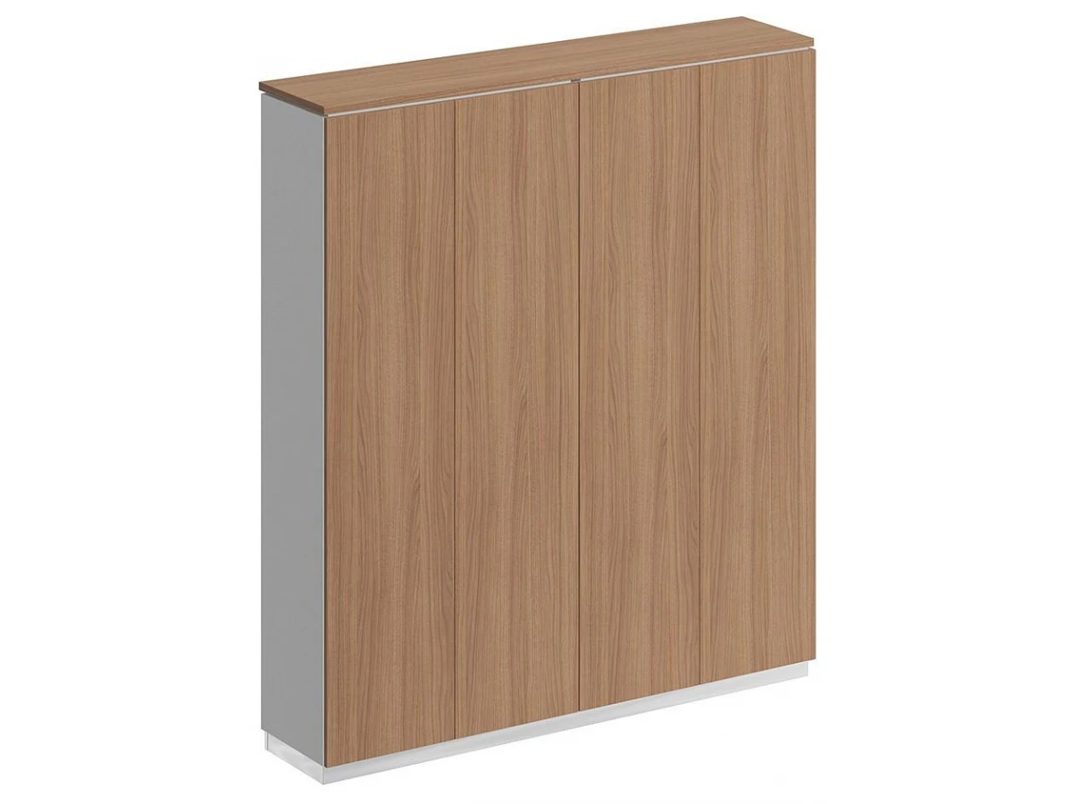 Шкаф состоит из 2-х стеллажей, топа на 2 шкафа, цоколя и дверей.