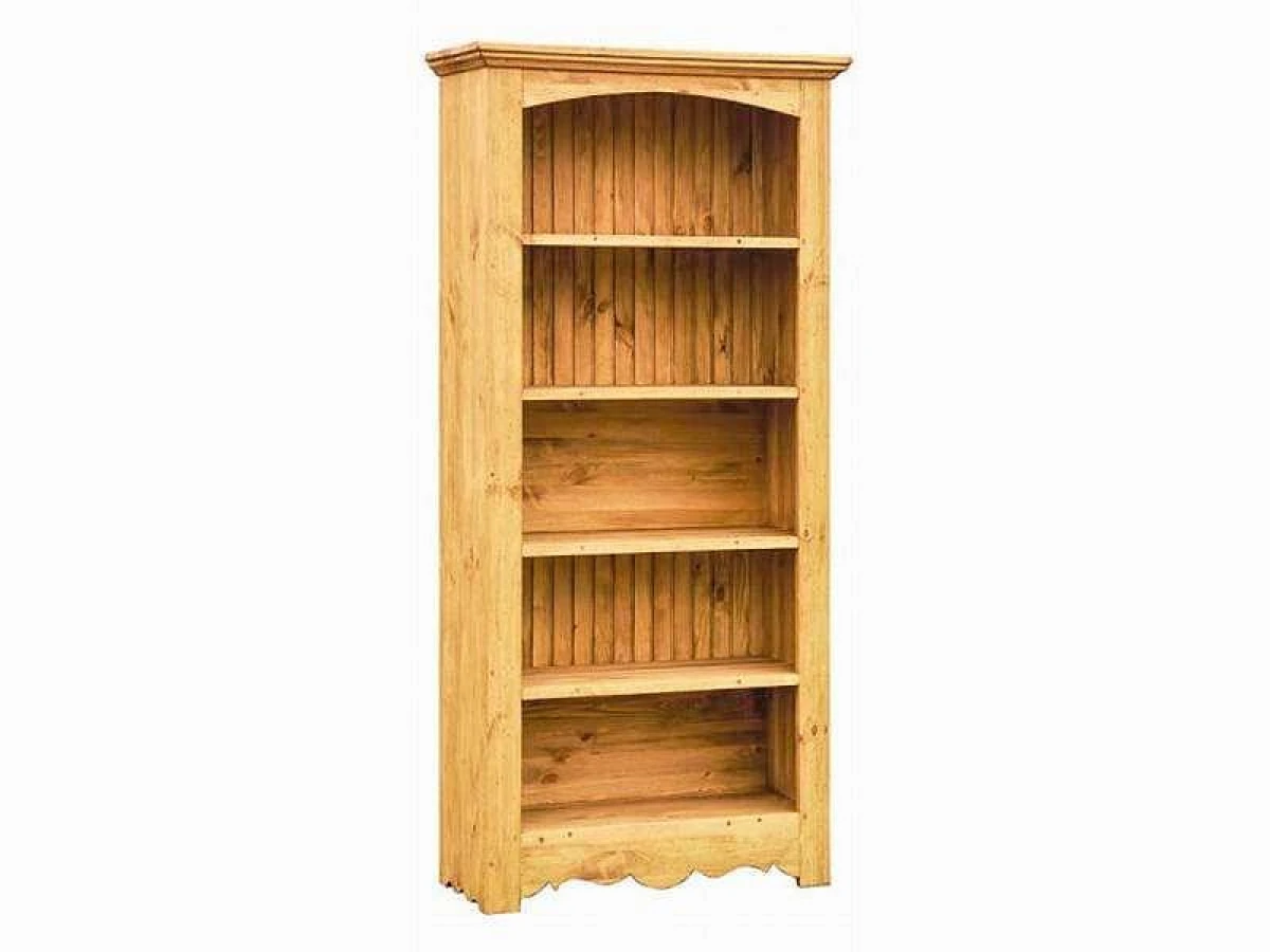 Стеллаж полностью изготовлен из массива сосны. Эта элегантная модель имеет резной цоколь, традиционный для французского деревенского стиля, и арочный декор в верхней части.