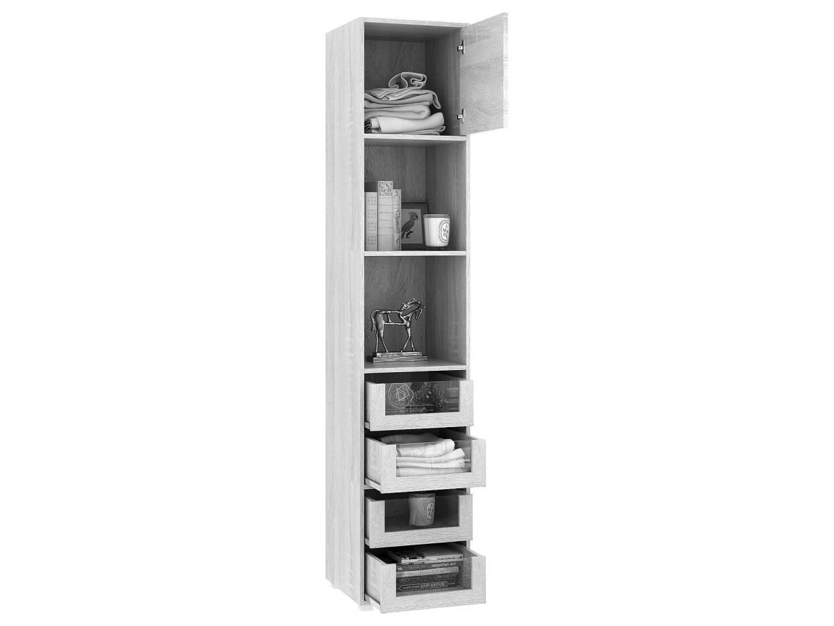 1 дверца, 1 полка, 4 ящика
