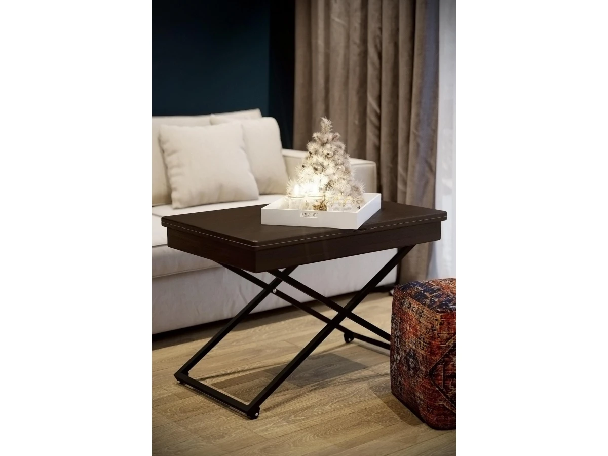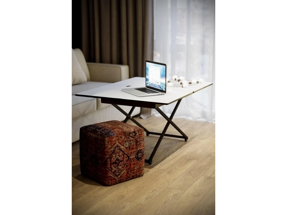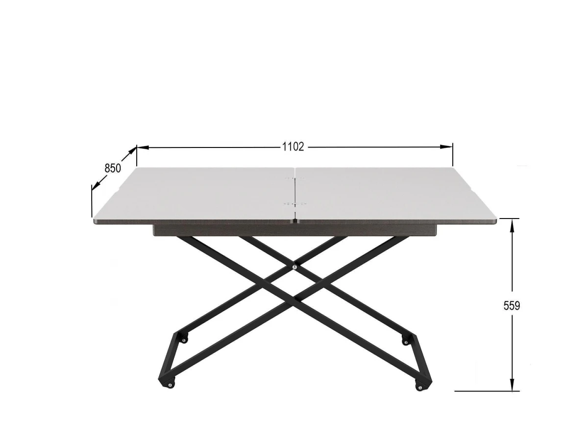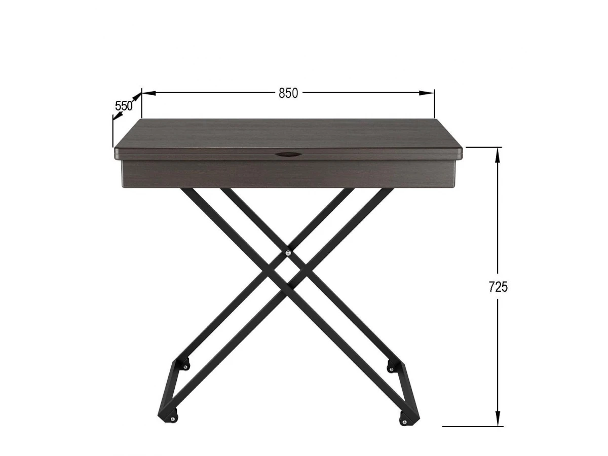 Особенностью такого предмета мебели является его способность трансформироваться: за считанные секунды можно увеличить столешницу или поменять высоту. Вы можете выбирать одно из четырех положений стола. Размеры столешницы в сложенном состоянии 850х550 мм, в разложенном-1102х850 мм. По высоте стол имеет два положения: 560 мм и 720 мм.