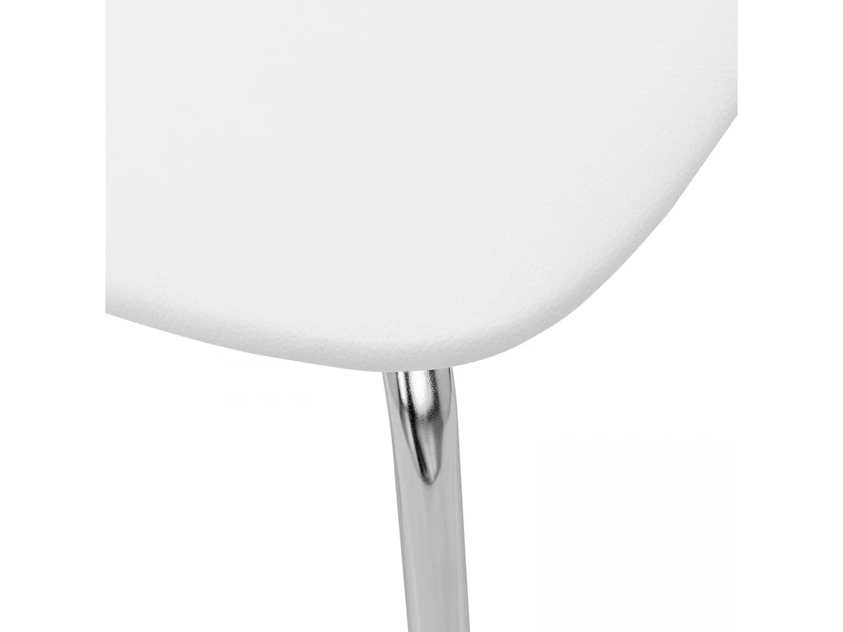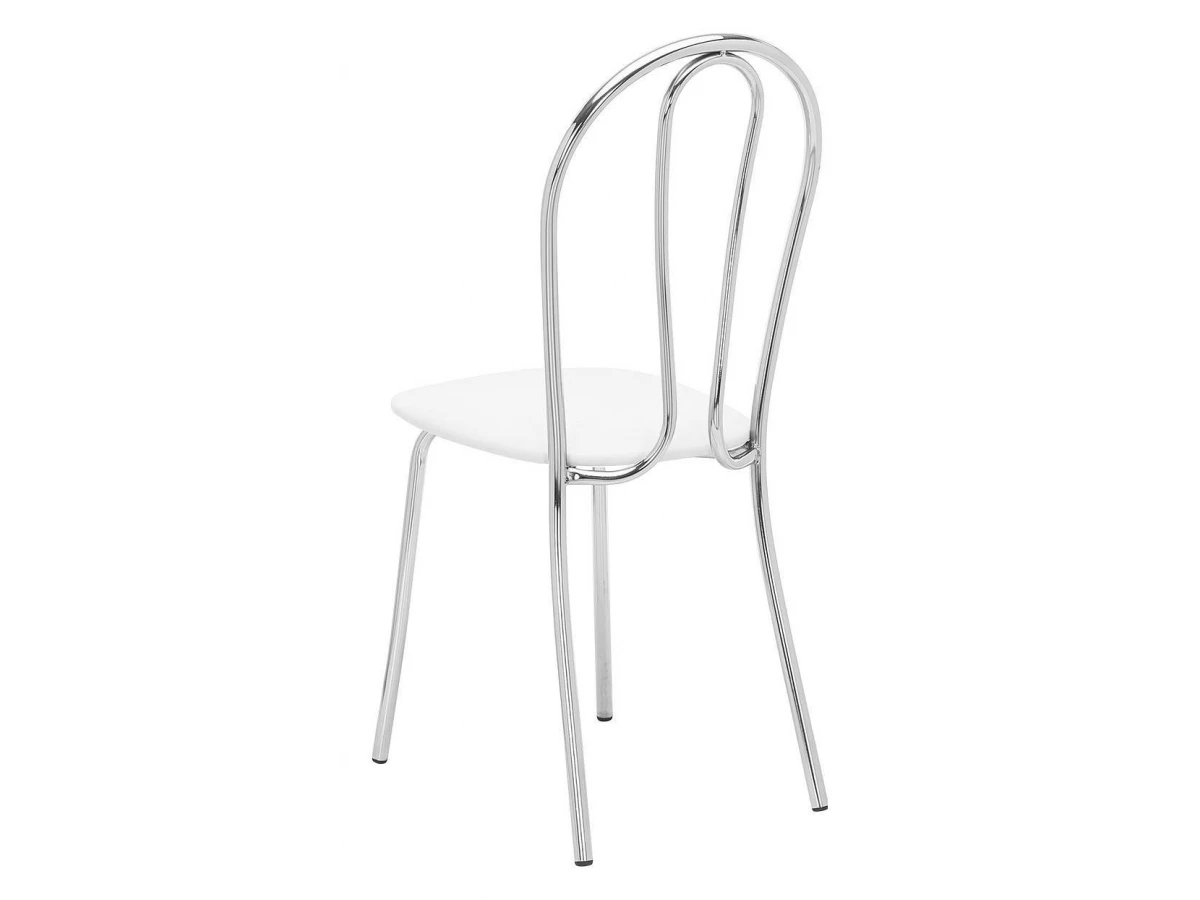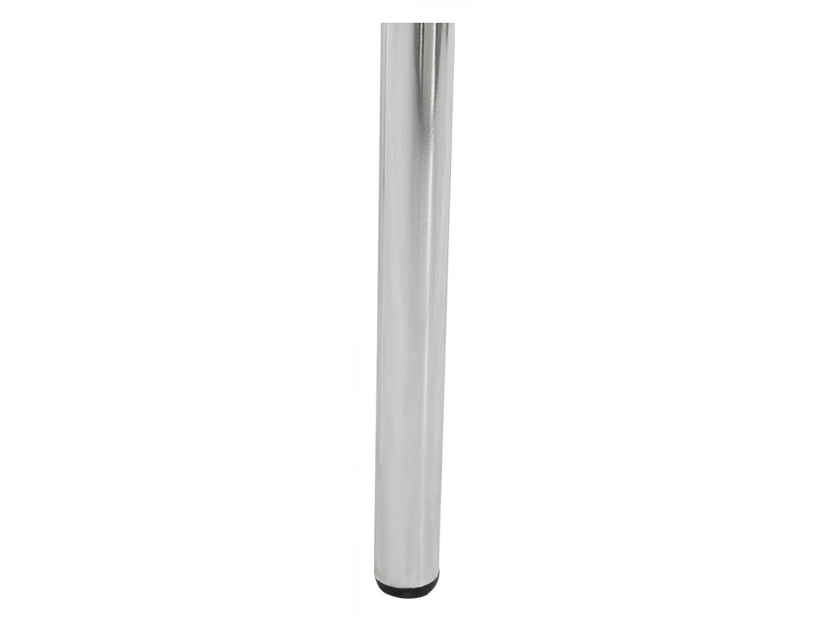 Хромированная металлическая спинка и сиденье, обтянутое экокожей, практичны, удобны и не требуют специального ухода.