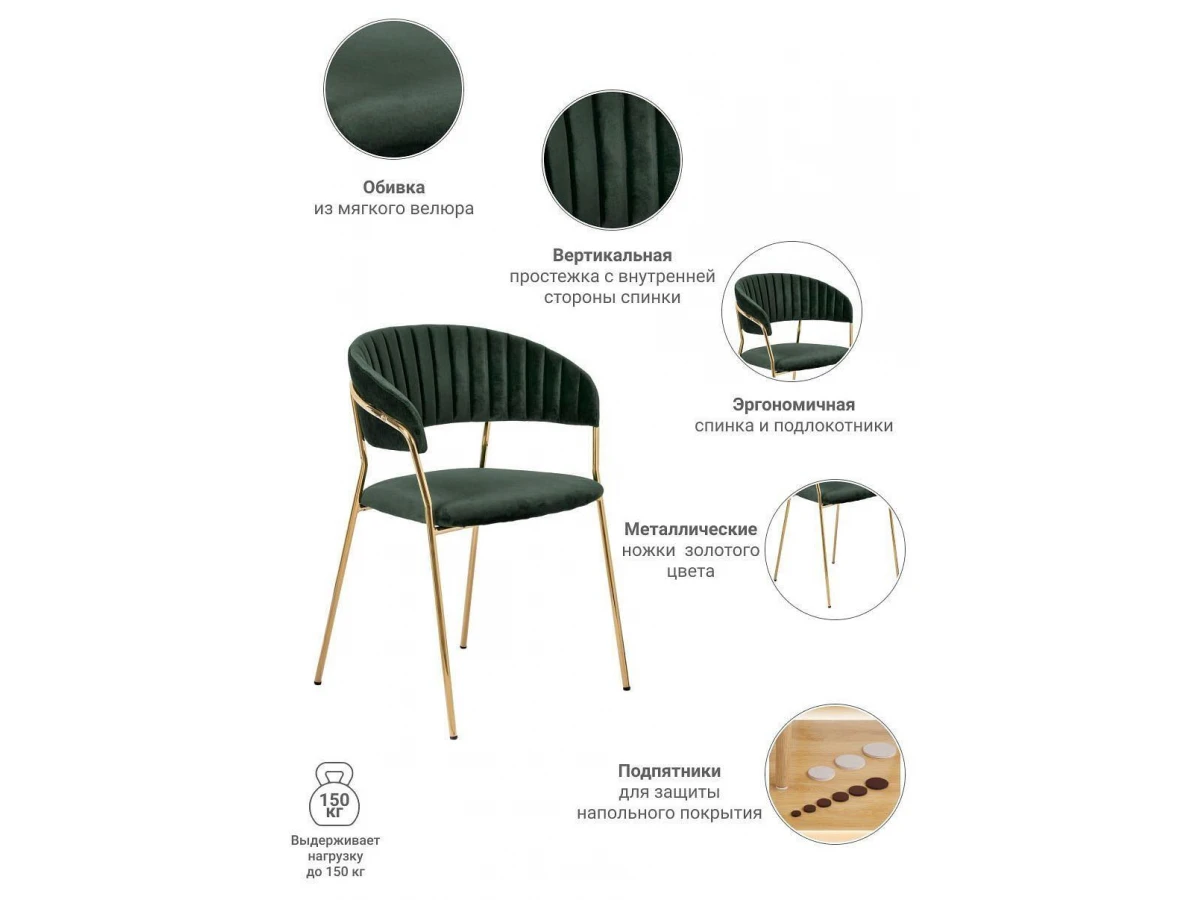 Мягкие спинка и сидение, оригинальный каркас и опоры с декоративным эффектом технологии золочения хромированных деталей.
