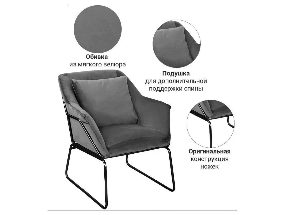 Кресло Alex сочетает в себе модные дизайнерские решения и функциональность: эргономичная форма спинки, приятная на ощупь велюровая обивка самых актуальных оттенков и прочный, но легкий и лаконичный металлический каркас создают эффект парящего в воздухе облака.