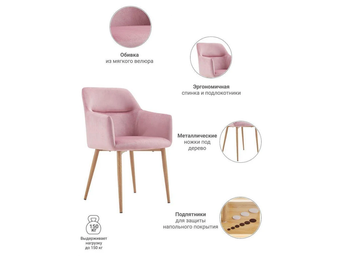 Кресло Rome станет идеальным решением для вашего интерьера. Ведь помимо мягких спинки и сиденья, кресло имеет удобные подлокотники, которые располагают к комфорту. Пудровый цвет подойдет в качестве дополнения к яркому интерьеру или станет эффектным акцентом в нейтральном дизайне. Мягкая, приятная обивка из велюра на сиденье, подлокотниках и спинке кресла делает его еще более комфортным. Основание из металла прочное и долговечное, а ножки, хоть и металлические, но выполнены под дерево, что позволяет креслам сочетаться с деревянной мебелью в помещении.