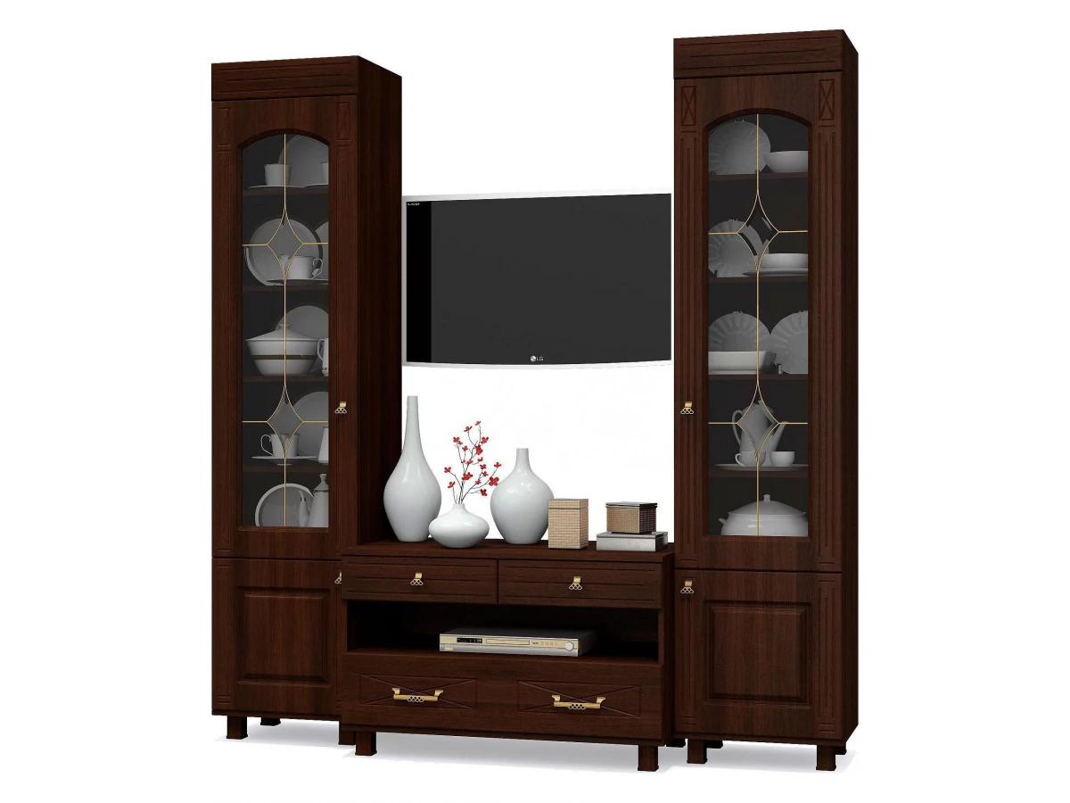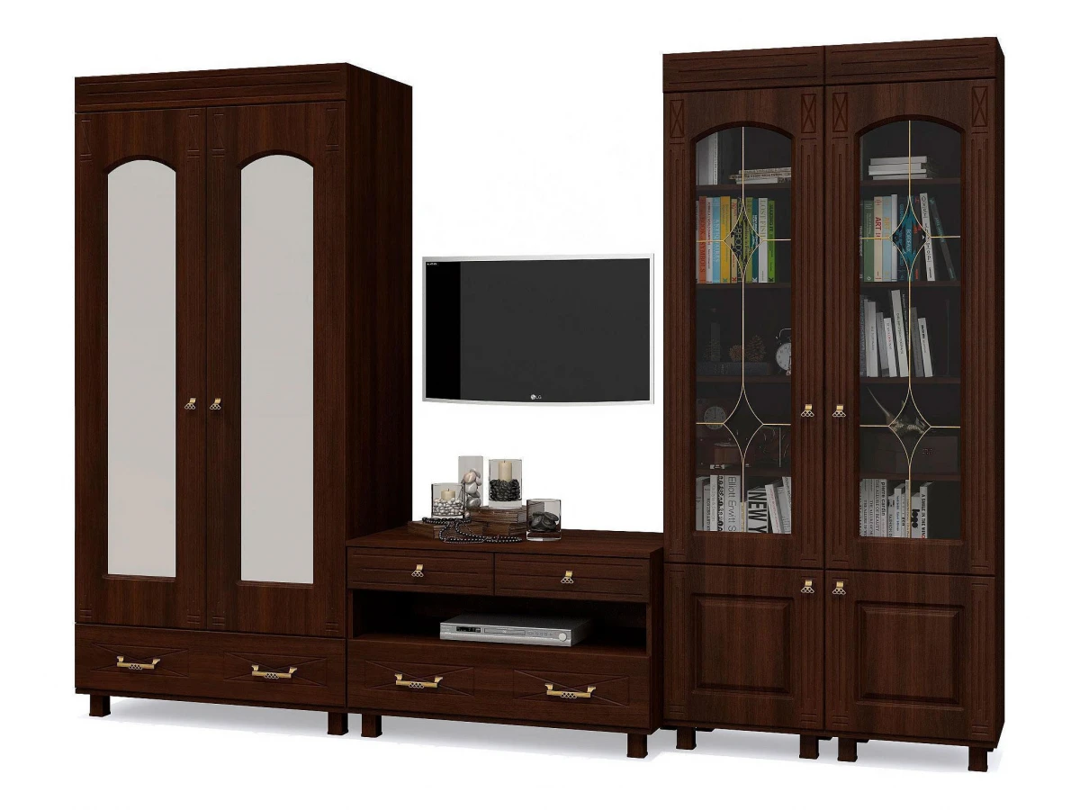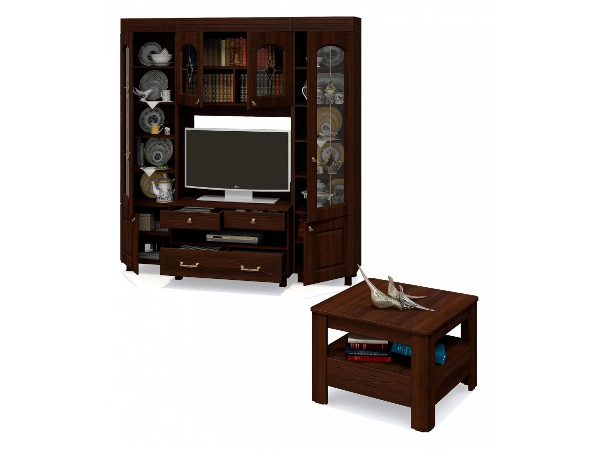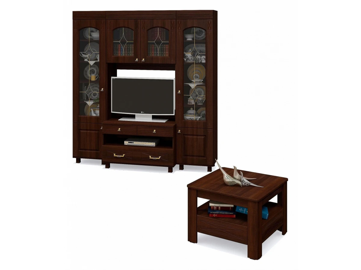 Серия «Элизабет», представленная брендом Компасс-мебель – это эффектная современная мебель, изготовленная на высокотехнологичном оборудовании. Гарнитур для гостиной Элизабет является прекрасным представителем этой коллекции. Этот гарнитур состоит из компонентов, представленных на фото. Выигрышный дизайн подчеркивается изысканностью оттенка фасада (орех темный), сделанного из прочного и надежного материала (ЛДСП Е1, МДФ, стекло), а матовый, прозрачный корпус, выполненный из ЛДСП Е1, завершает образ. Приятных покупок!