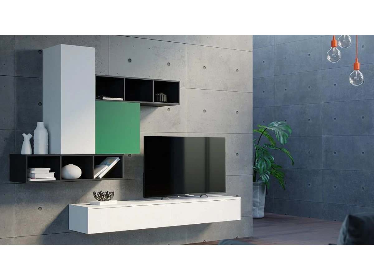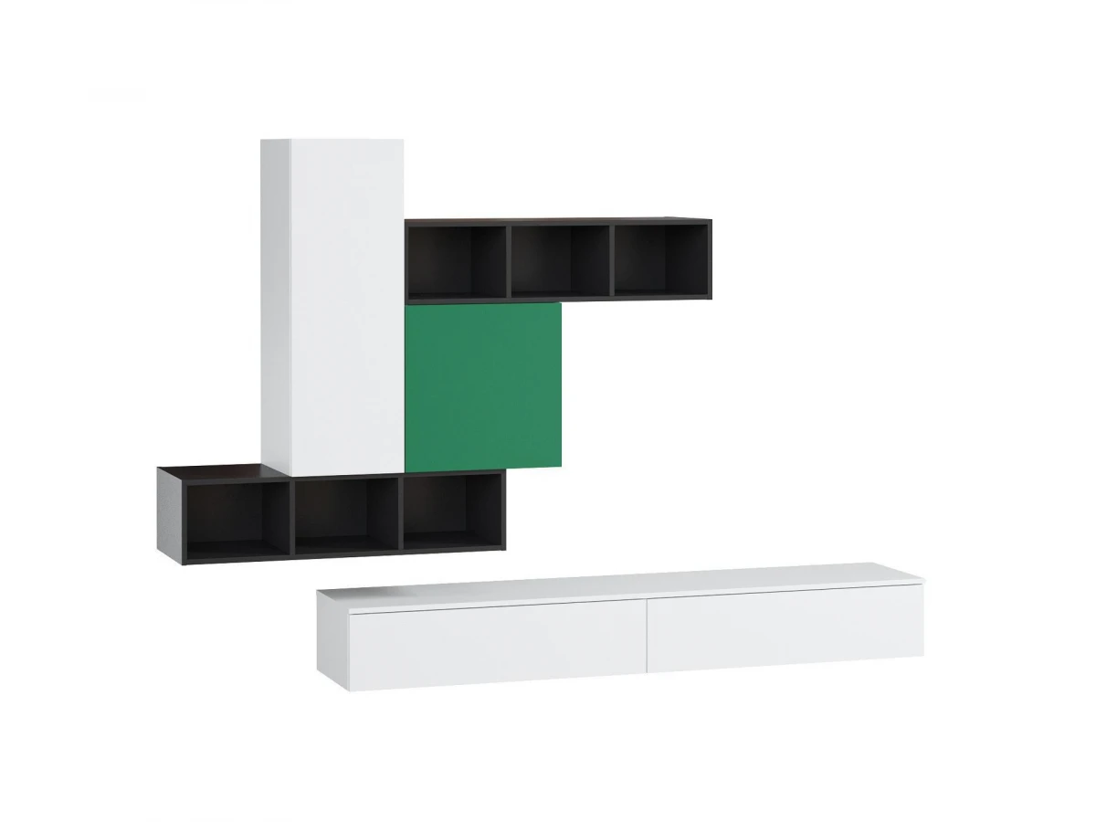 Стенка Леруан – яркий представитель ультрасовременной коллекции мебели. Оригинальный дизайн – пример популярного сейчас минималистичного стиля, подойдет для тех, кто не хочет перегружать гостиную «тяжелыми» системами хранения. В состав комплекта входит подвесная ТВ-тумба, а также два открытых и два глухих модуля, скрепленных между собой. Стенку-горку можно поставить в любое помещение. Она достаточно вместительна, отлично вписывается в пространство.