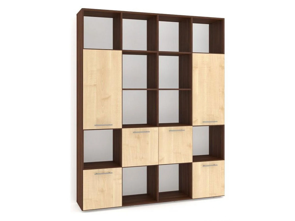 Применение задней стенки из ЛДСП (в ячейках с фасадами) позволяет использовать данный стеллаж для зонирования пространства (чтобы предотвратить опрокидывание, необходимо обеспечить крепление стеллажа к стене).