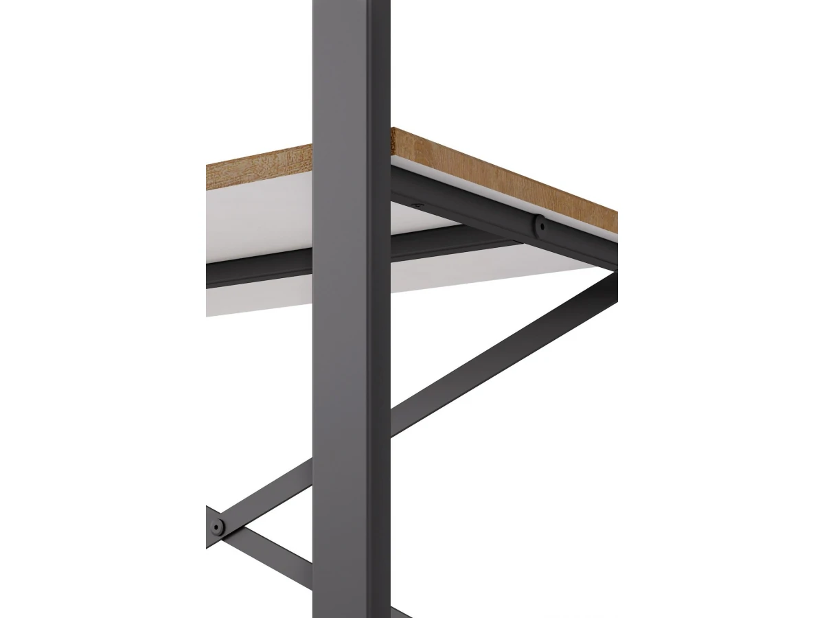 Сборно-разборный прочный металлический каркас стеллажа Хардвиг S выполнен из профильной трубы толщиной 40x20 мм. Дополнительную прочность добавляет стяжка, которую можно установить в любом проёме между полок. Сами полки выполнены из экологичного материала ЛМДФ, облицованного влагостойким декоративным покрытием.