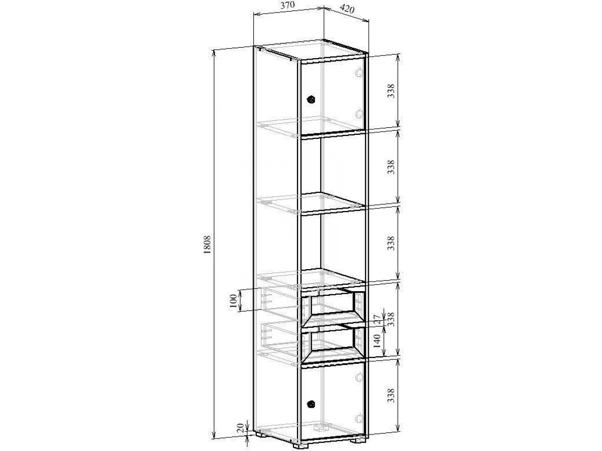1 полка, 2 дверцы, 2 ящика