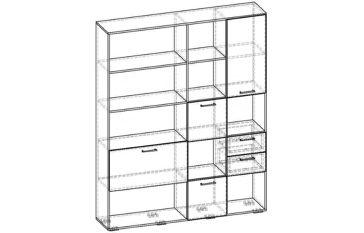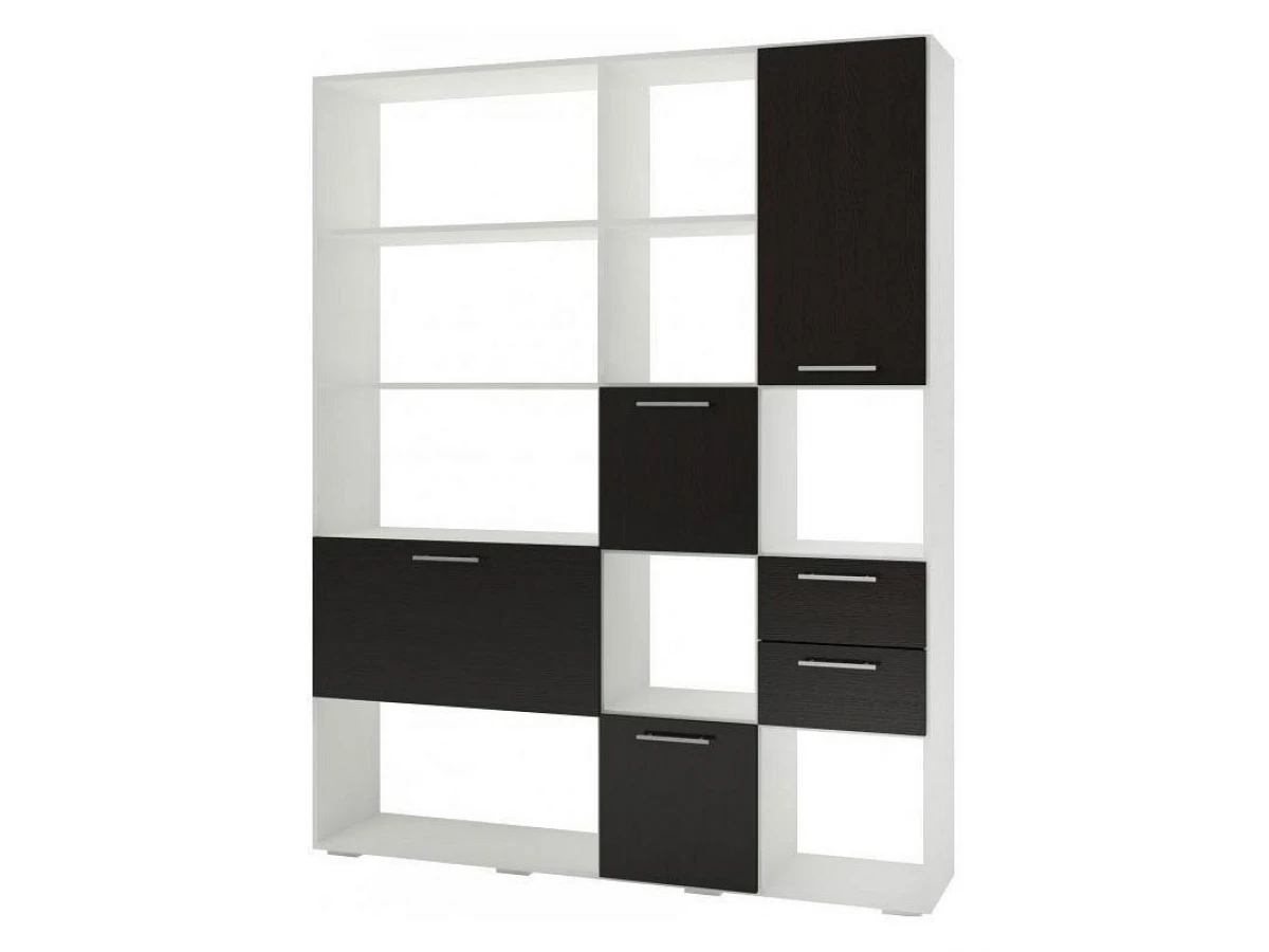 Применение задней стенки из ЛДСП (в ячейках с фасадами) позволяет использовать данный стеллаж для зонирования пространства (чтобы предотвратить опрокидывание, необходимо обеспечить крепление стеллажа к стене).