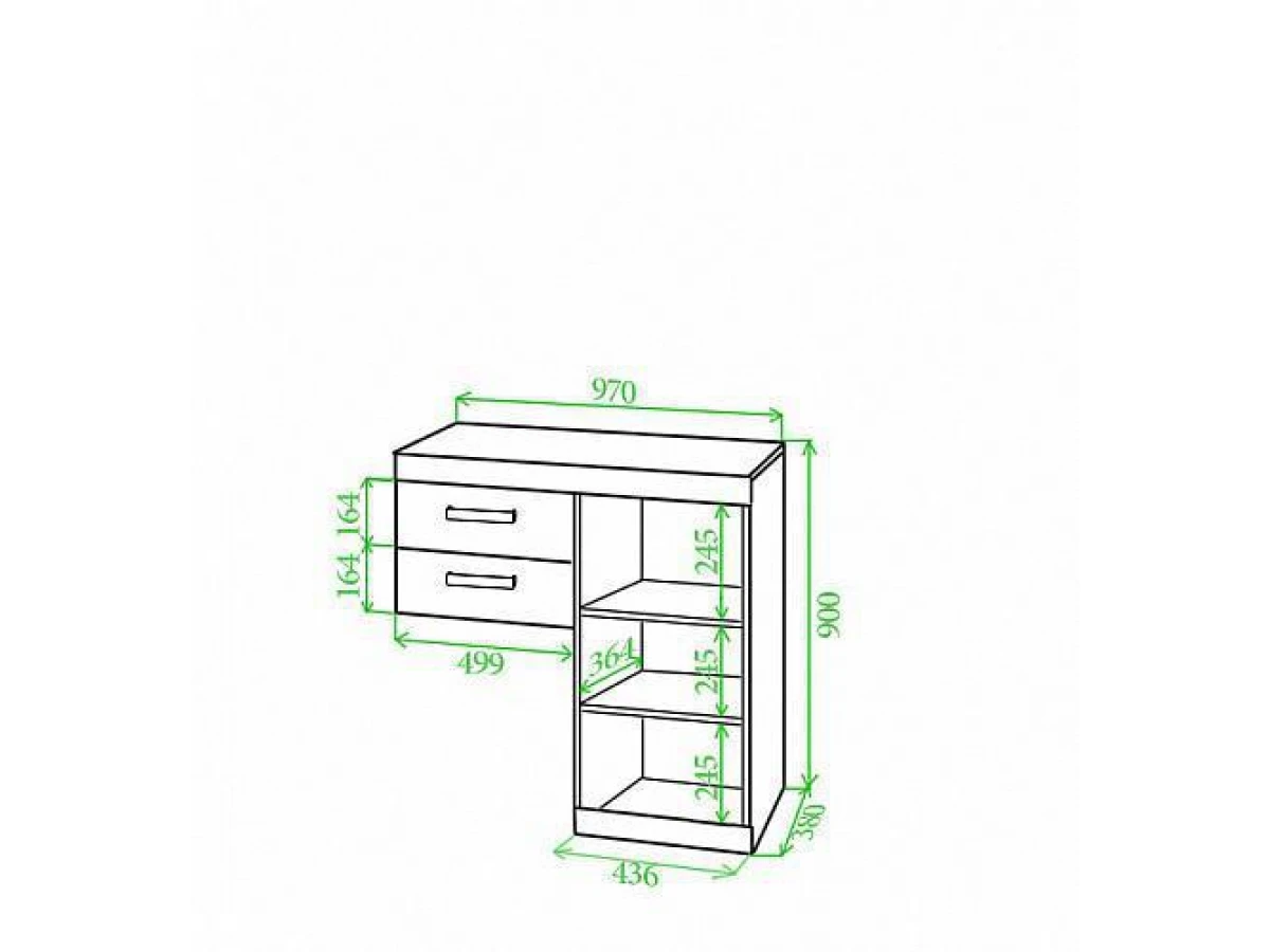 1 дверца, 1 полка, 2 ящика