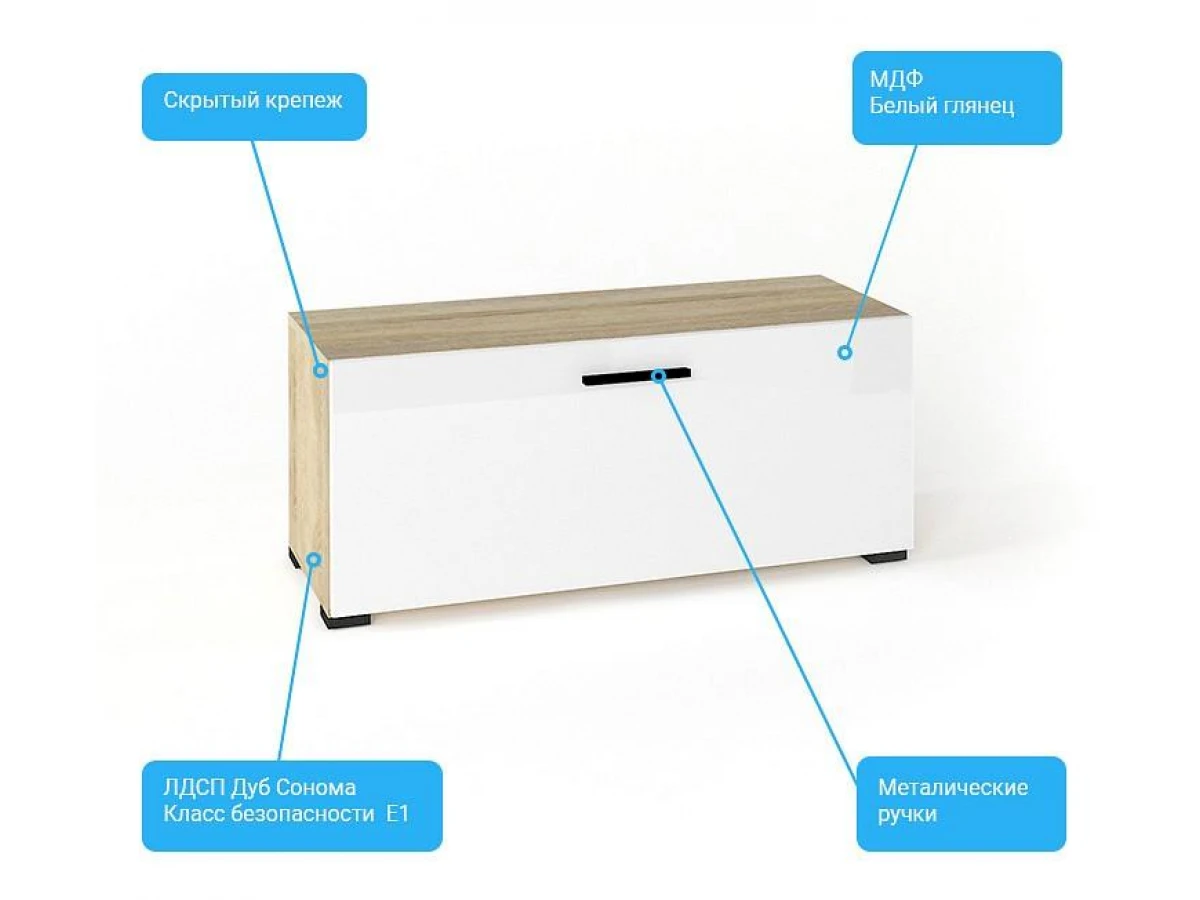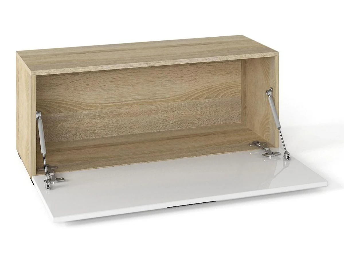 Корпус без сквозных отверстий - мебельные стяжки внутри мебели.Кромки ПВХ обеспечивают долговечность мебели.Откидной фасад с двумя газ - лифтами из экологичного МДФ в плёнке ПВХ.Металлическая ручка черного цвета в комплекте.Надежно крепится к стене, можно использовать как навесную ТВ тумбу.Четыре регулируемые опоры черного цвета входят в комплектацию шкафа. Ножки - опоры устанавливаются только при установке шкафа на пол, при навеске на стену опоры не крепятся.