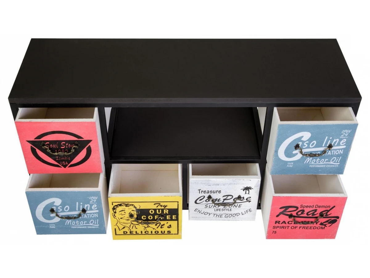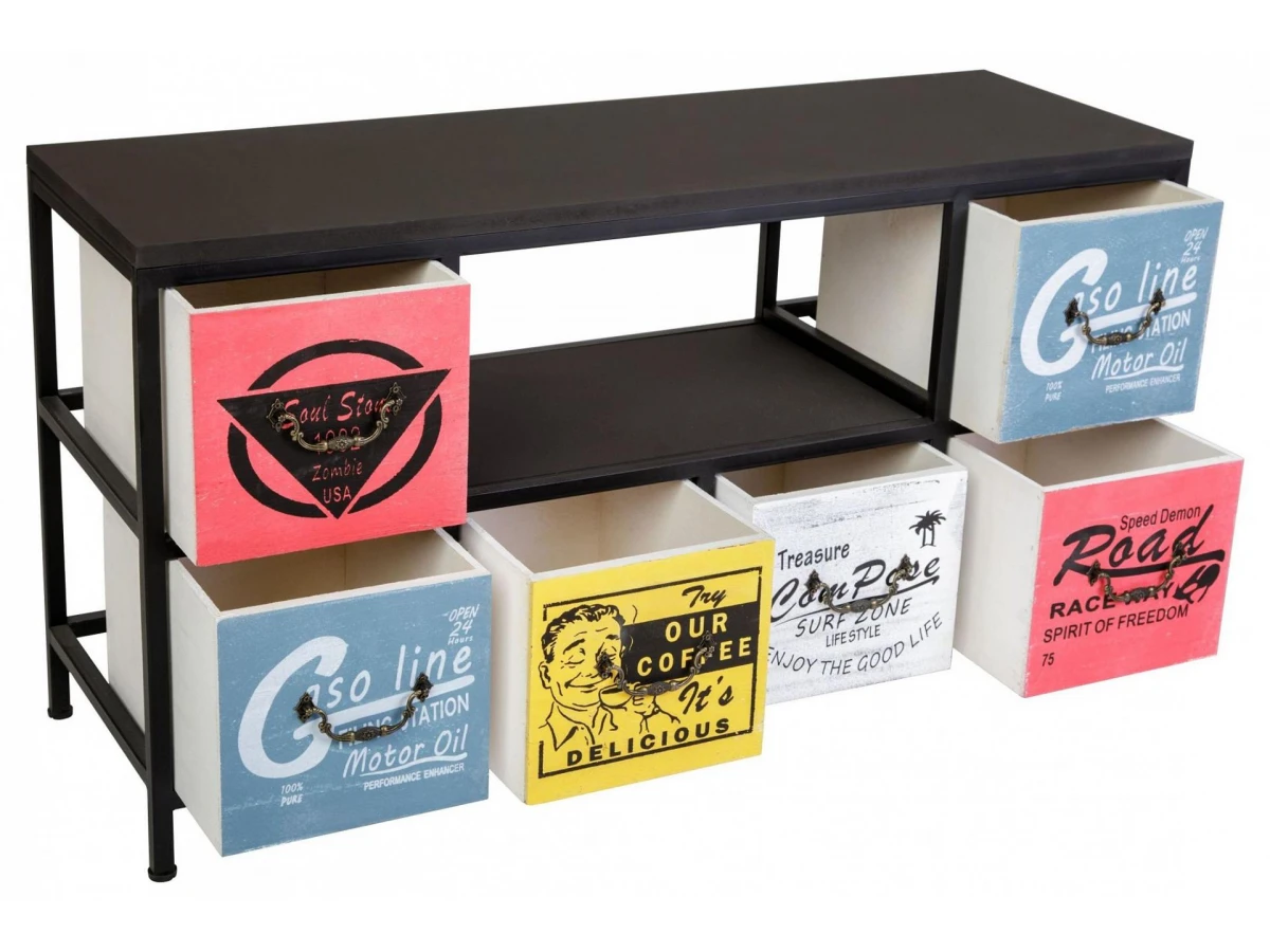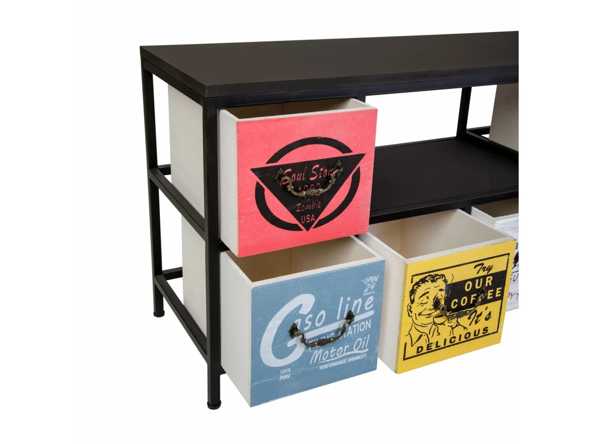 Комод с шестью ящиками и полкой. Каркас комода изготовлен из метала с порошковой окраской. Столешница и ящики изготовлены из дерева (Павловния войлочная), окрашены.
