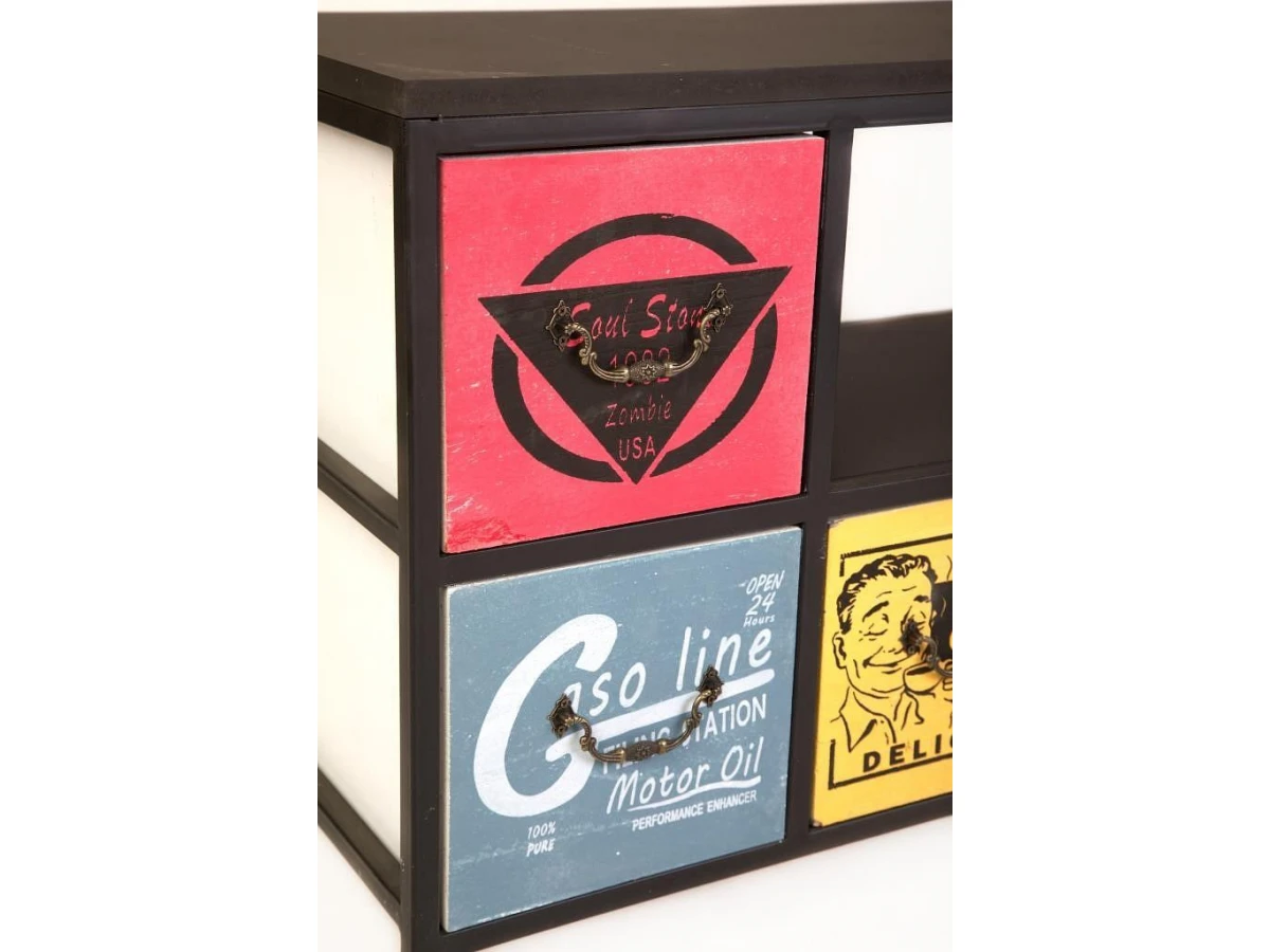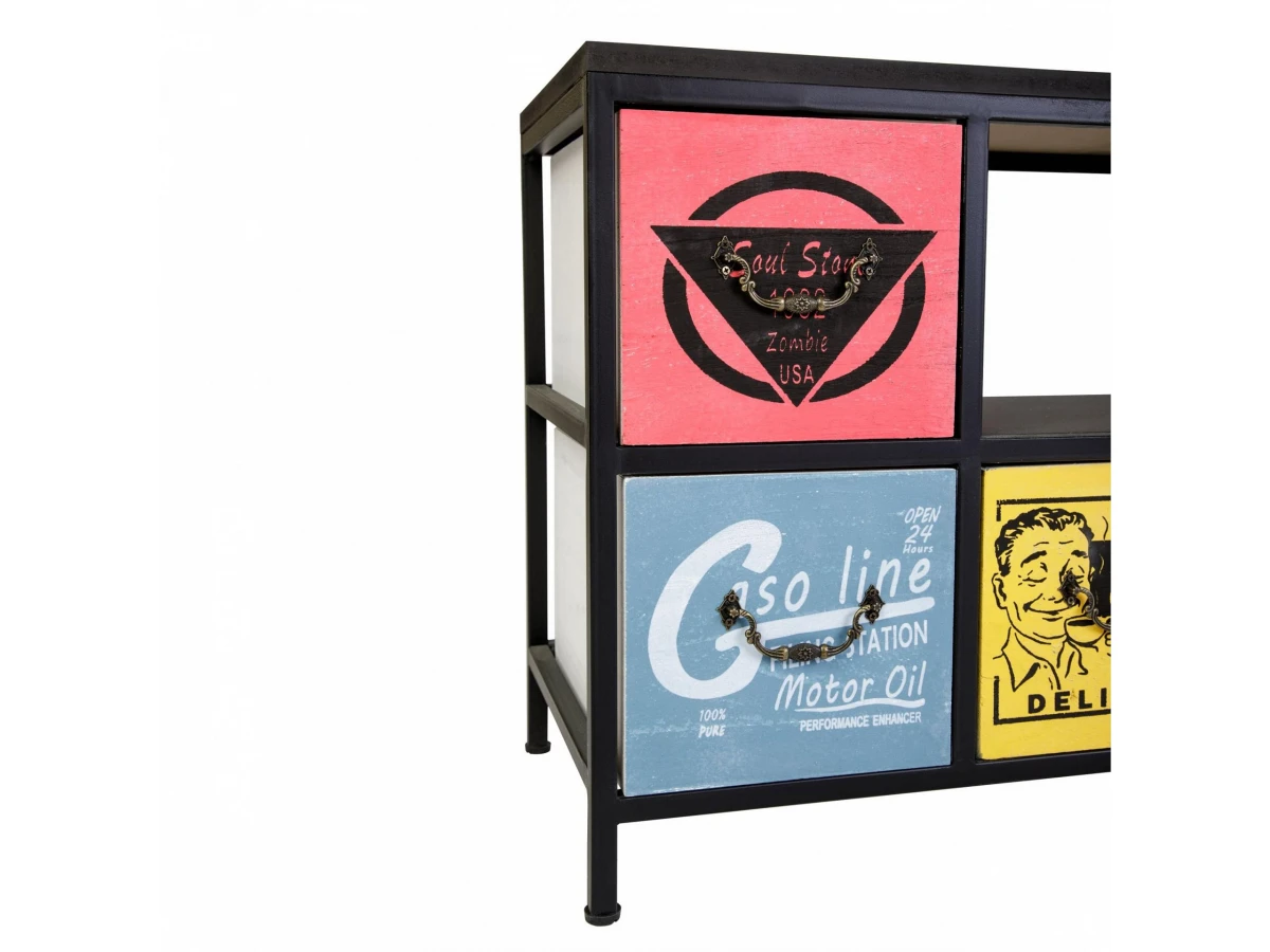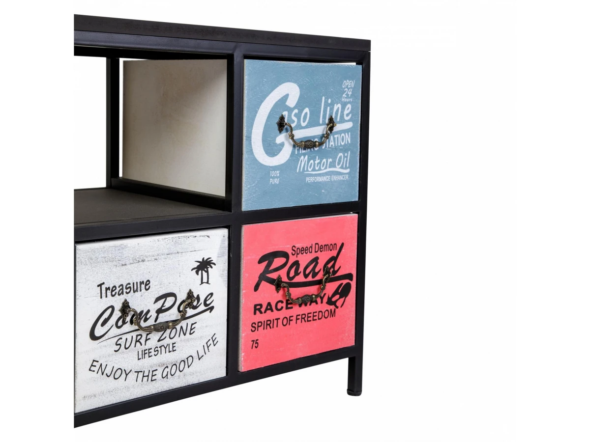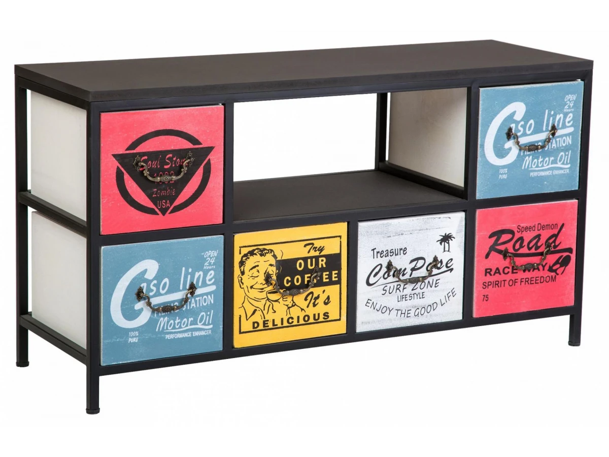 Комод с шестью ящиками и полкой. Каркас комода изготовлен из метала с порошковой окраской. Столешница и ящики изготовлены из дерева (Павловния войлочная), окрашены.