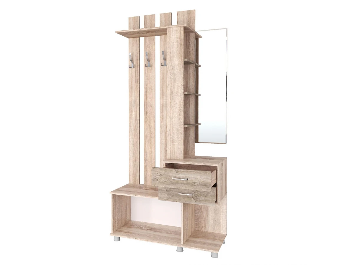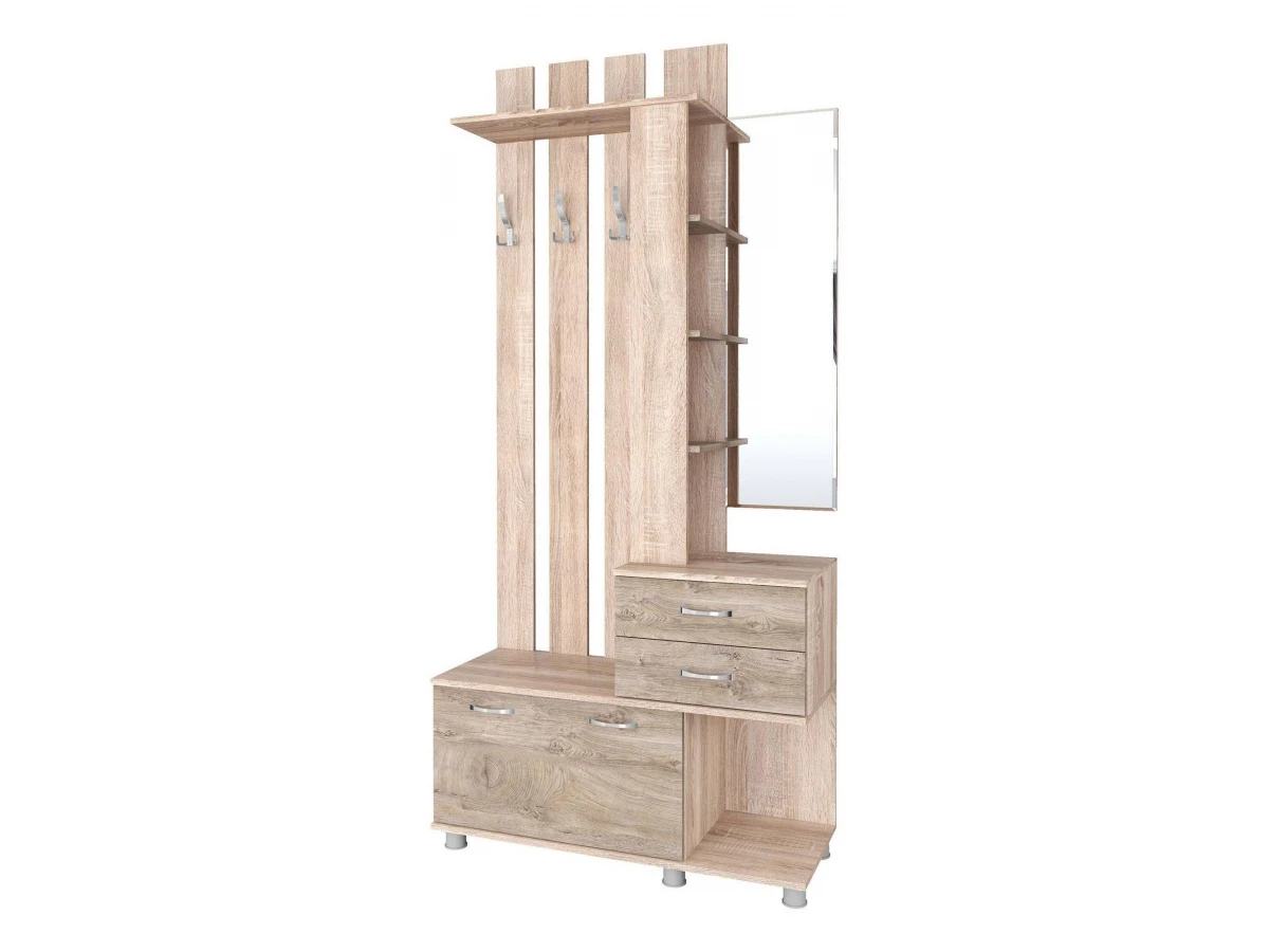 Когда все вещи находятся на своих местах – это залог красивого и аккуратного интерьера. Тем приятнее, когда зоной для хранения становится вместительная и надежная вешалка с тумбой Микс Арт TKS_00-00014723. Эта модель изготовлена брендом Тэкс и входит в серию «Микс Арт». Матовый корпус вешалки сделан из популярного материала (ЛДСП Е1) и окрашен в благородный оттенок «дуб сонома». Производитель предлагает комплектацию, в которую входит: 1 откидная дверца,, 2 ящика,, 3 крючка,, 7 полок. Вешалка с тумбой Микс Арт стоит 9174 руб.