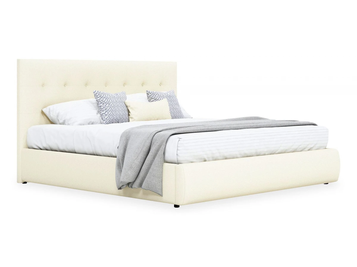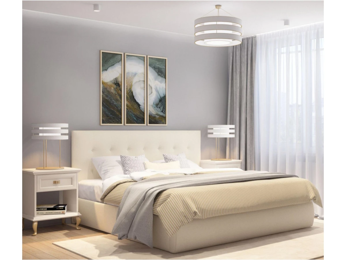 Кровать Селеста с высоким оригинальным изголовьем и ортопедическим основанием имеет рельефную мягкую спинку с неглубокими стяжками, которые придают особую изысканность изголовью.