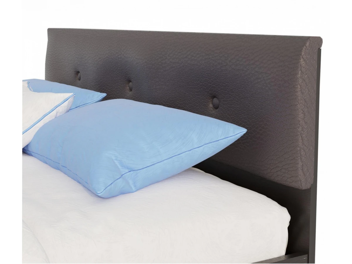 Двуспальная кровать с мягким кожаным изголовьем Виктория ЭКО-П в цвете венге – интересное и стильное решение для вашей спальни.