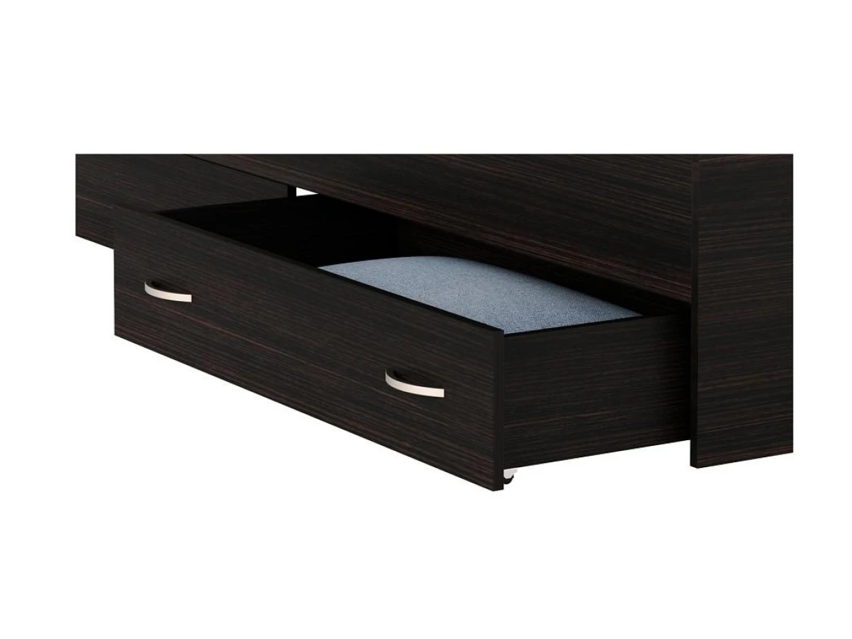 Кровать укомплектована двумя выдвижными ящиками – ящики могут быть установлены с любой стороны по длине кровати. С другой стороны – царга.