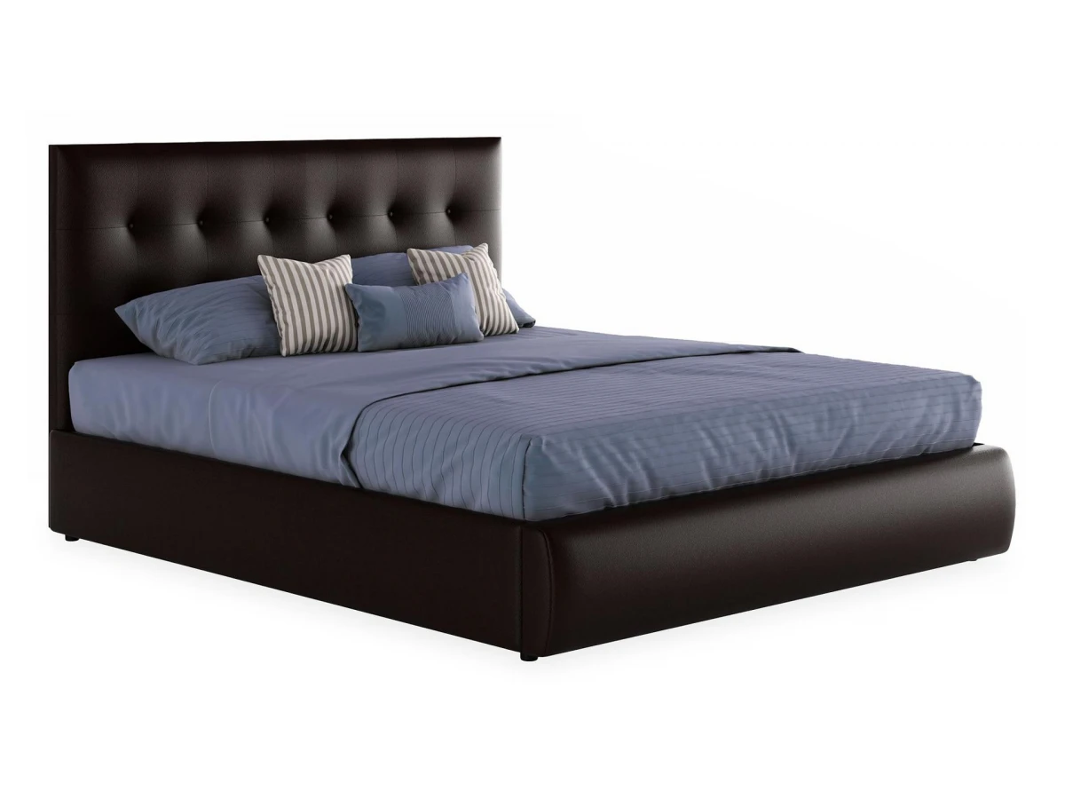 Кровать имеет рельефную мягкую спинку с неглубокими стяжками, которые придают особую изысканность изголовью. Обивка изголовья и весь периметр кровати выполнен из высокопрочного материала “Винилискожа”.