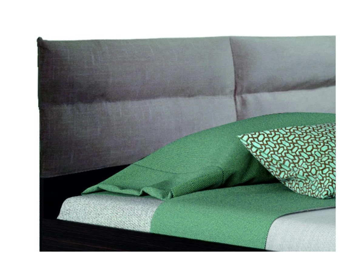 Изголовье декорировано съемной мягкой подушкой.