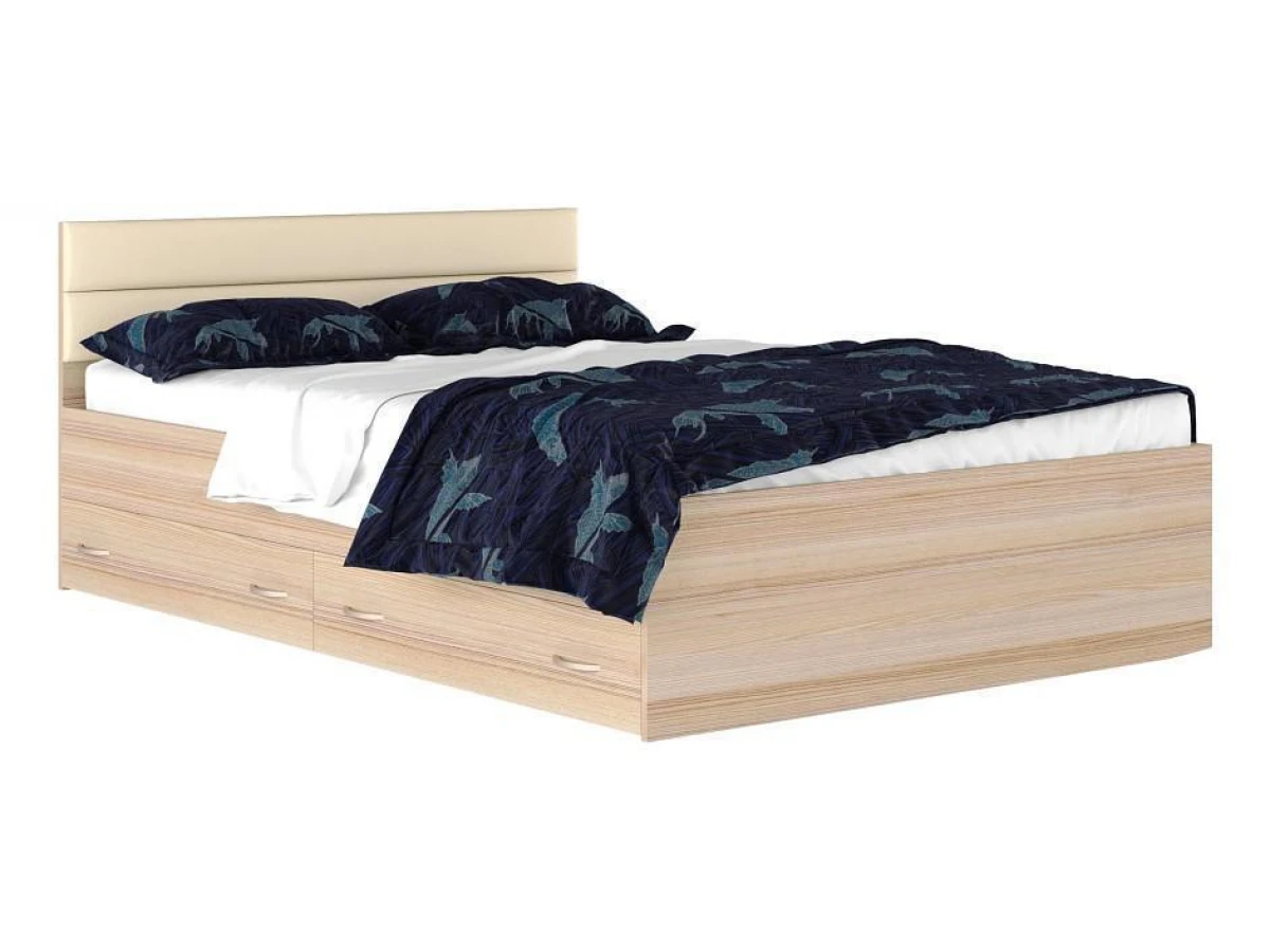 Изголовье кровати украшено двумя батонами из высокопрочного материала “Винилискожа”.