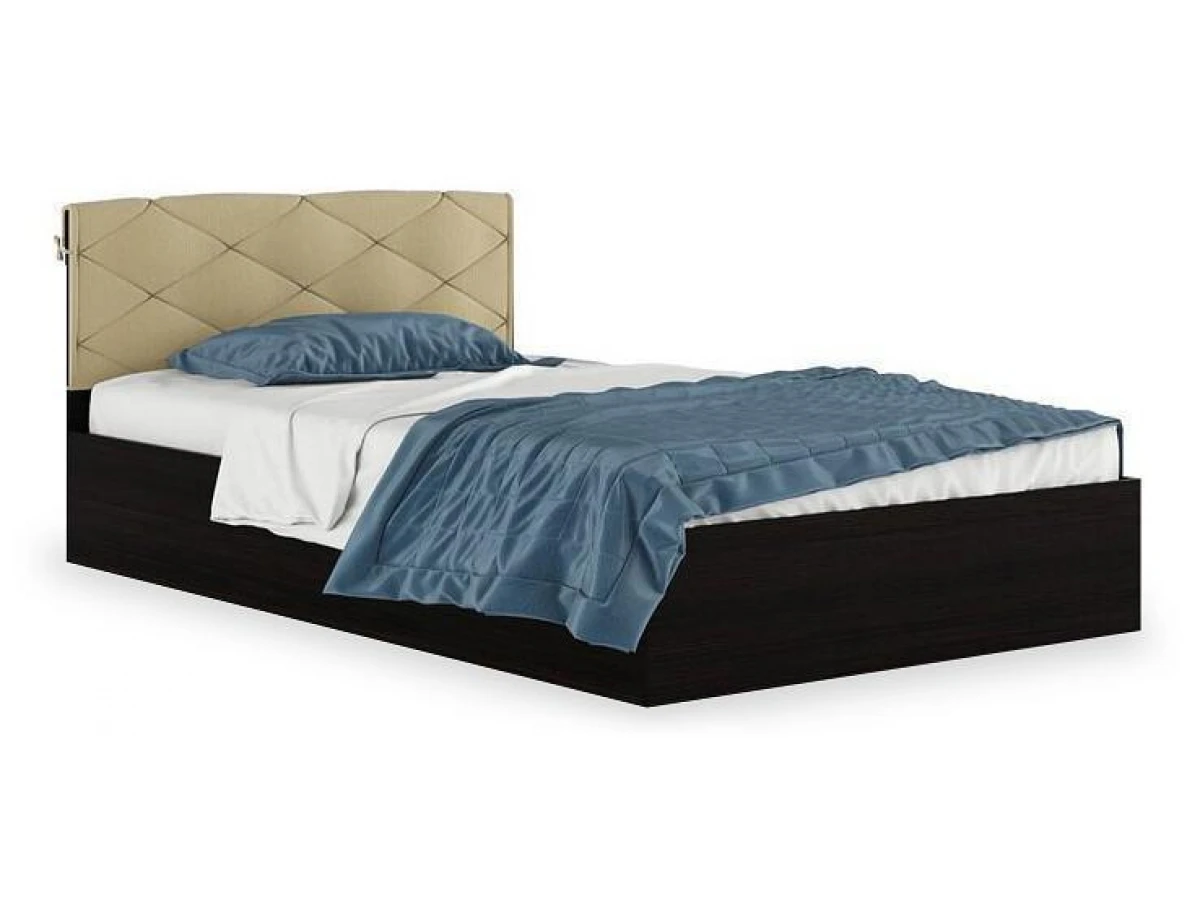 Кровать полутораспальная Виктория-П с матрасом 2000х1200 – прекрасное решение для интерьера вашей спальни. Данная модель создана брендом Наша мебель (Россия) и входит в серию Виктория-П. Ее фактические размеры соответствуют 780 мм в высоту, 1250 мм в ширину, а длина кровати составляет 2035 мм. Размеры спального места: 2000 мм в длину и 1200 мм в ширину. Практичный и качественный корпус (ЛДСП Е1 рогожка, венге матовый БЕЖЕВЫЙ) отлично сочетается с изящным фасадом модели ( рогожка, матовый бежевый). В комплект также входит матрас 2000x1200, основание - настил ДСП. Приятных покупок!