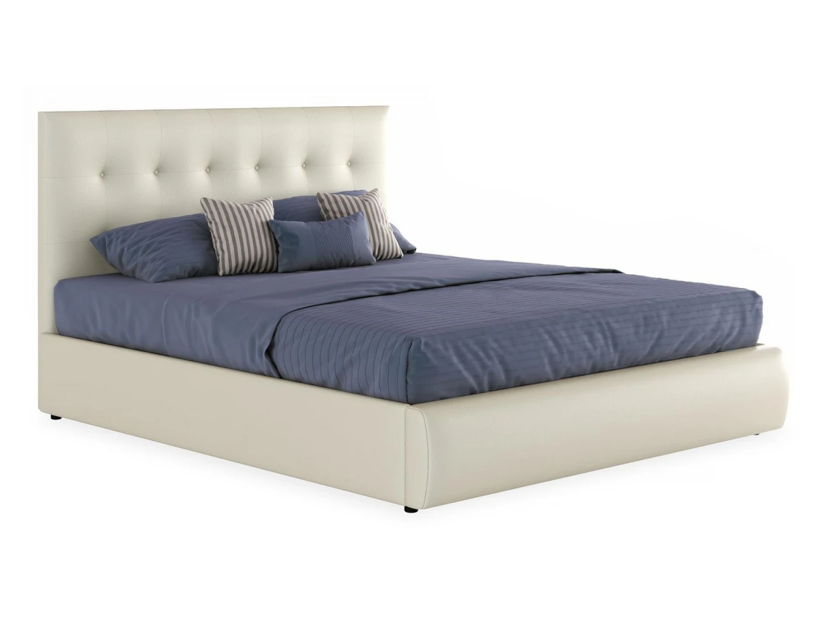 Кровать имеет рельефную мягкую спинку с неглубокими стяжками, которые придают особую изысканность изголовью. Обивка изголовья и весь периметр кровати выполнен из высокопрочного материала “Винилискожа”.
