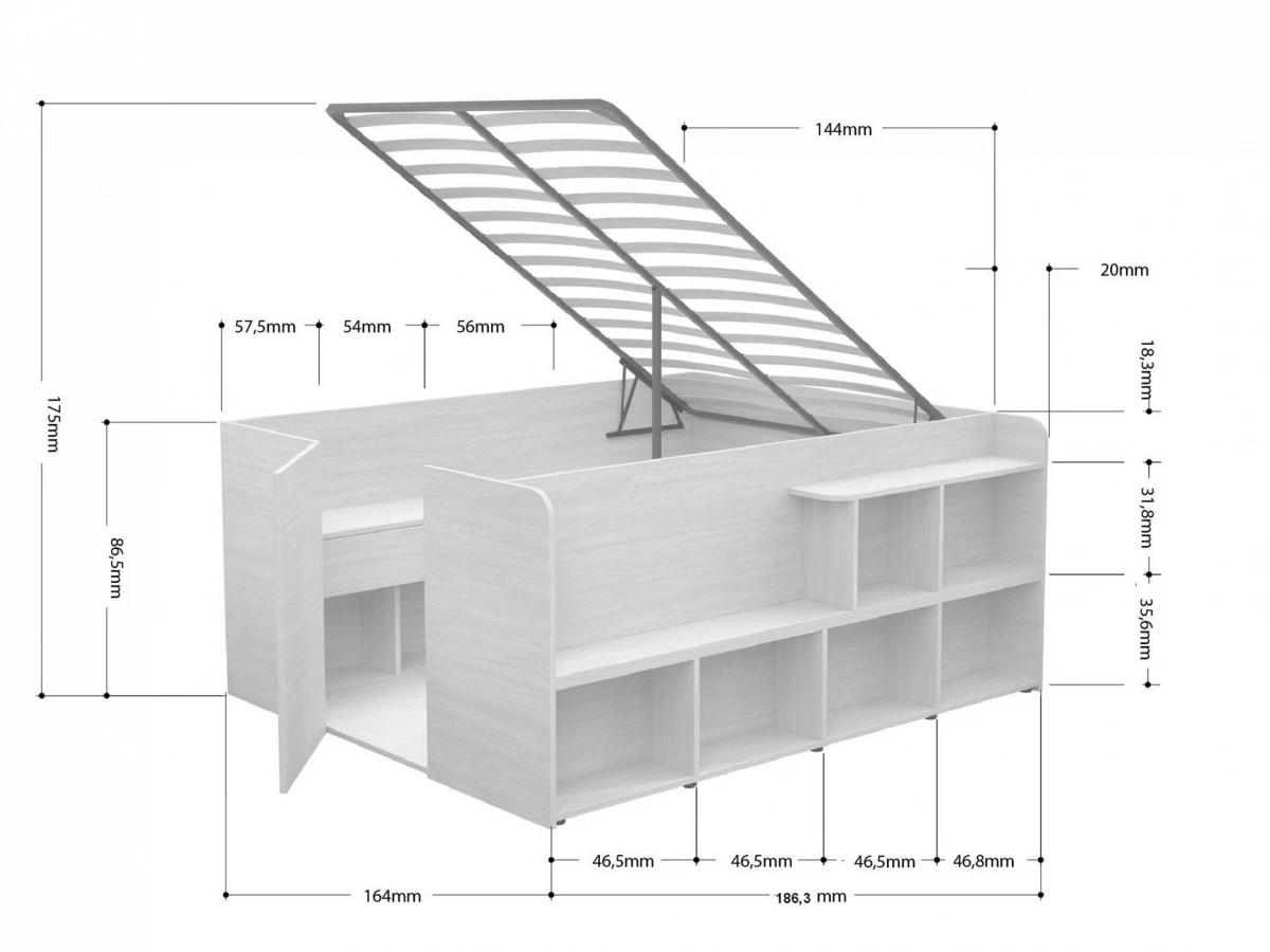 Кровать Twist UP 1863x1640x885
