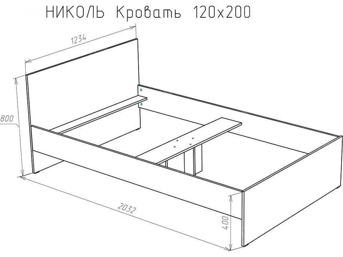Полутораспальная кровать Николь 2032x1234x800