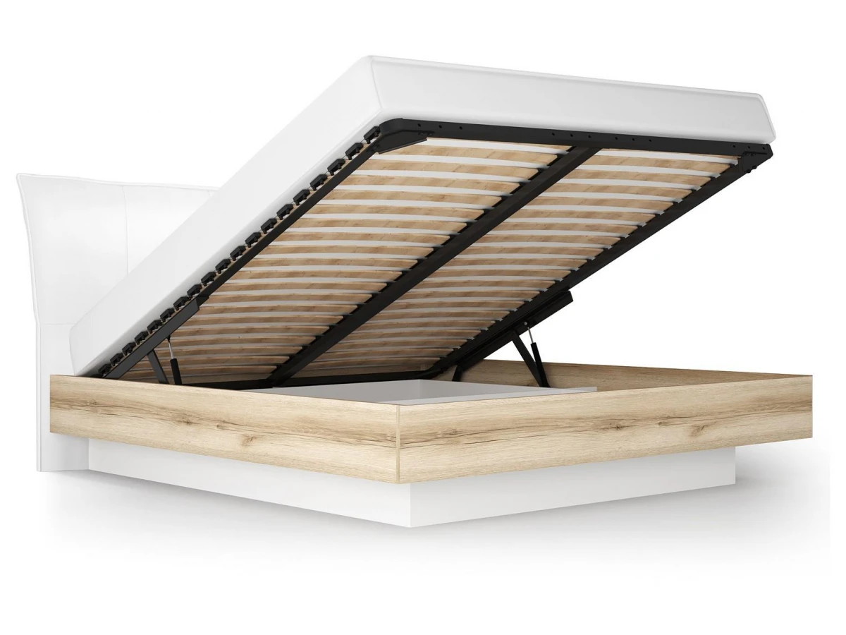 Полутораспальная кровать Вега Скандинавия с подъемным механизмом белый, дуб каньон