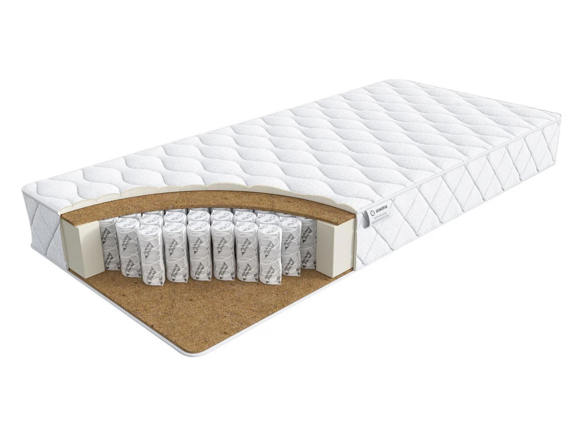 блок независимых пружин с увеличенной высотой пружин,койра кокосовая,усиление по периметру матраса