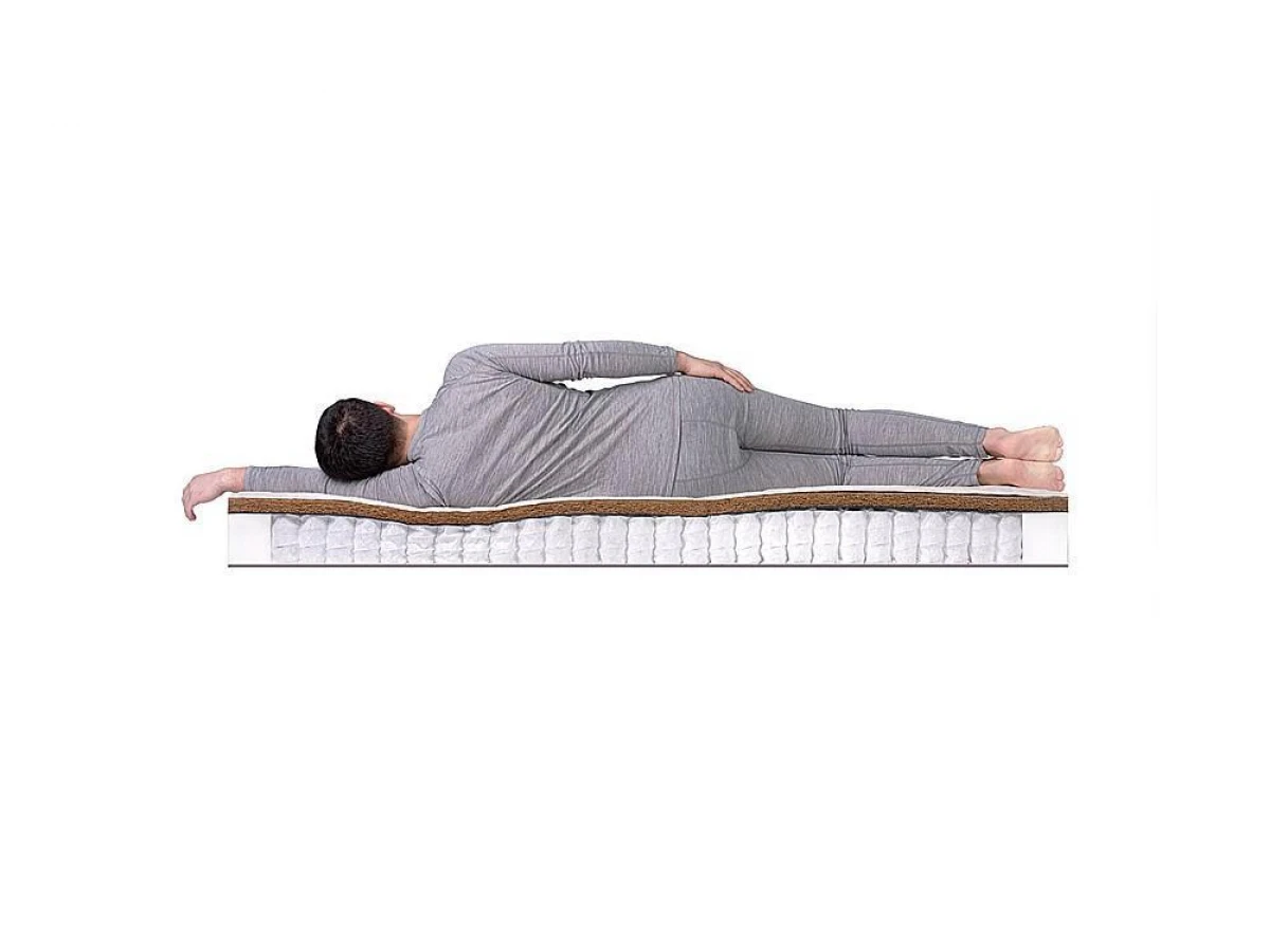 Разносторонний матрас, поверхности которого отличает разный уровень жёсткости при неизменной анатомичности. Сторона А – наполнитель из латексированной койры придаёт матрасу необходимую жёсткость, не снижая уровня его анатомичности, то есть способности принимать форму тела, обеспечивающей высокий уровень комфорта. Сторона Б – внутренний наполнитель из кокосовой койры, внешний наполнитель из эластичной пены. Комбинация, позволяющая понизить уровень жёсткости и увеличить анатомичность. Независимый пружинный блок TFK гасит нежелательные колебания. Изолирующий слой из Льноджутового волокна служит прекрасной защитой наполнителей от трения о металл пружин, продлевая срок службы матраса. Если вы хотите иметь возможность изменять степень жёсткости или желаете продлить жизнь вашего матраса, рекомендуем ознакомиться с широким выбором аксессуаров для сна.