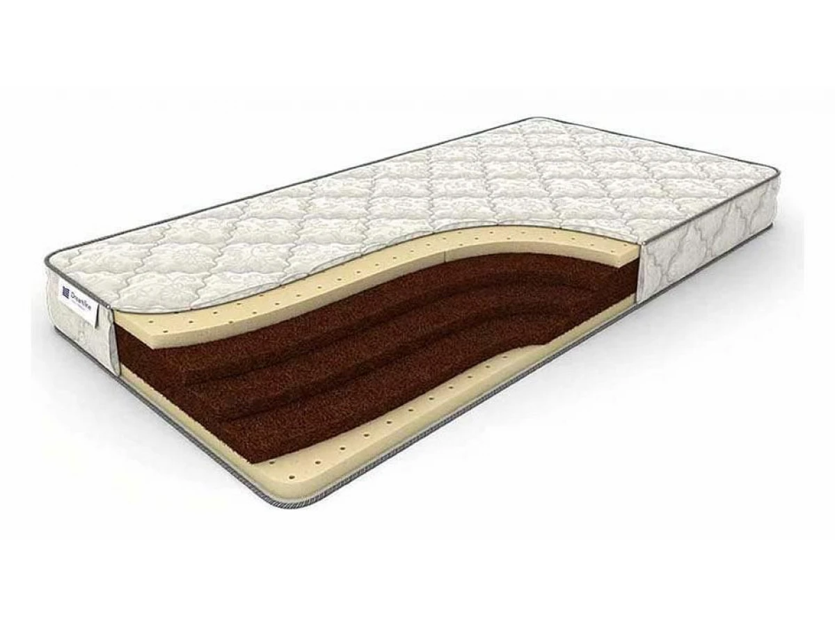 Беспружинный матрас для тех, кто выбирает здоровую жёсткость. Три слоя латексированной кокосовой койры придают конструкции жёсткую упругость. Один слой наполнителя из натурального латекса смягчает упругость матраса, не уменьшая его ортопедических свойств. Прочный чехол с глубокой текстурой обеспечивает прекрасное сцепление с постельным бельём из любого материала.