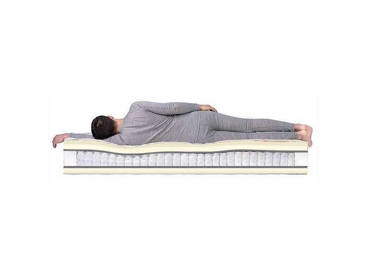 Relax Massage DS – умеренно мягкий матрас из класса ортопедических. В основание матраса взят блок пружин с независимой основой Дуэт, их количество равно 250 крупных пружин + 108 пружин меньшего диаметра на метр квадратный, чем обеспечивается практически идеальная поддержка спины. Внутри крупных пружин в шахматном порядке располагаются пружины меньшего диаметра. Такое строение идеально подходит для пар со значительной разницей в весе. Над пружинным блоком расположены два вида натурального латекса, что дает возможность равномерно распределить вес тела. Над пружинами располагается слой перфорированного латекса, за ним идет самый верхний комфортный слой - 7-зональный латекс. Это помогает позвоночнику принять правильное положение. Латекс – это пористый материал, хорошо вентилируемый. Это позволяет матрасу «дышать» и сохранять оптимальную температуру зимой и летом. Особая структура 7-зонального латекса снимает напряжение, оказывает микро-массажный эффект, что благоприятно сказывается на кровотоке.