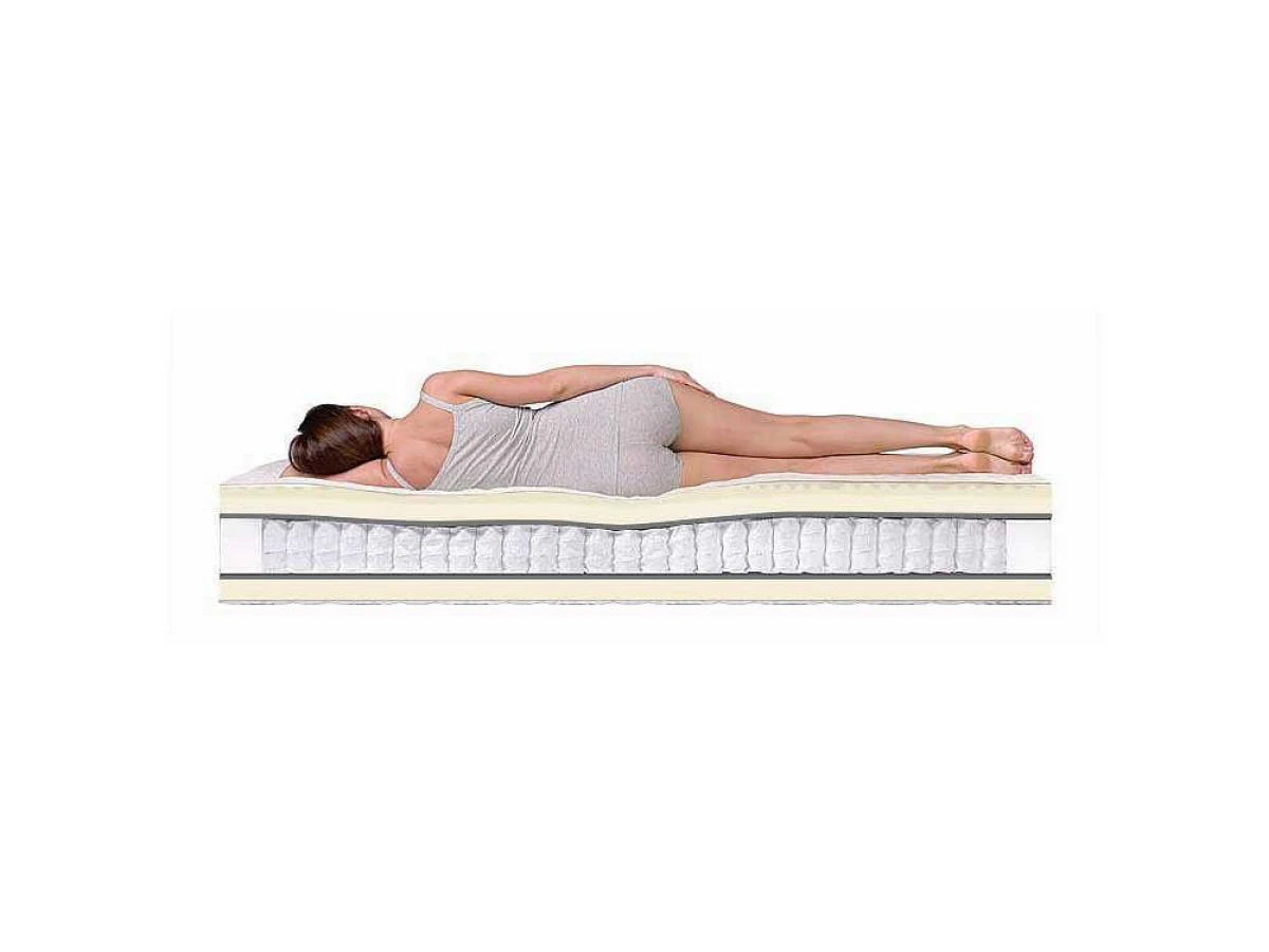 Relax Massage DS – умеренно мягкий матрас из класса ортопедических. В основание матраса взят блок пружин с независимой основой Дуэт, их количество равно 250 крупных пружин + 108 пружин меньшего диаметра на метр квадратный, чем обеспечивается практически идеальная поддержка спины. Внутри крупных пружин в шахматном порядке располагаются пружины меньшего диаметра. Такое строение идеально подходит для пар со значительной разницей в весе. Над пружинным блоком расположены два вида натурального латекса, что дает возможность равномерно распределить вес тела. Над пружинами располагается слой перфорированного латекса, за ним идет самый верхний комфортный слой - 7-зональный латекс. Это помогает позвоночнику принять правильное положение. Латекс – это пористый материал, хорошо вентилируемый. Это позволяет матрасу «дышать» и сохранять оптимальную температуру зимой и летом. Особая структура 7-зонального латекса снимает напряжение, оказывает микро-массажный эффект, что благоприятно сказывается на кровотоке.