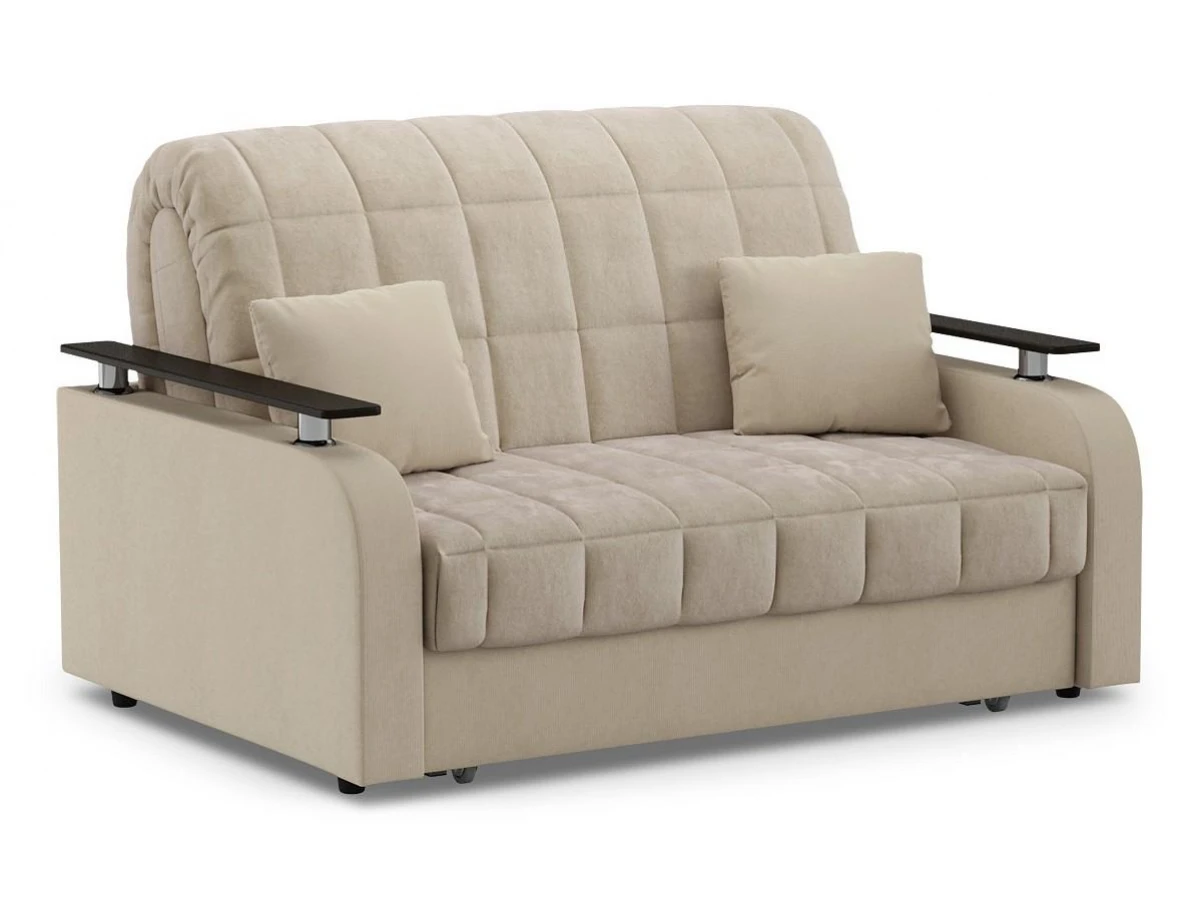комфортный уровень посадкинадежный механизм трансформации подходит для ежедневного использованияпри минимальных габаритах диван обладает отличным спальным местоморигинальный декор подлокотников выполняет функцию практичных столешницчехол модели съемный для чистки.