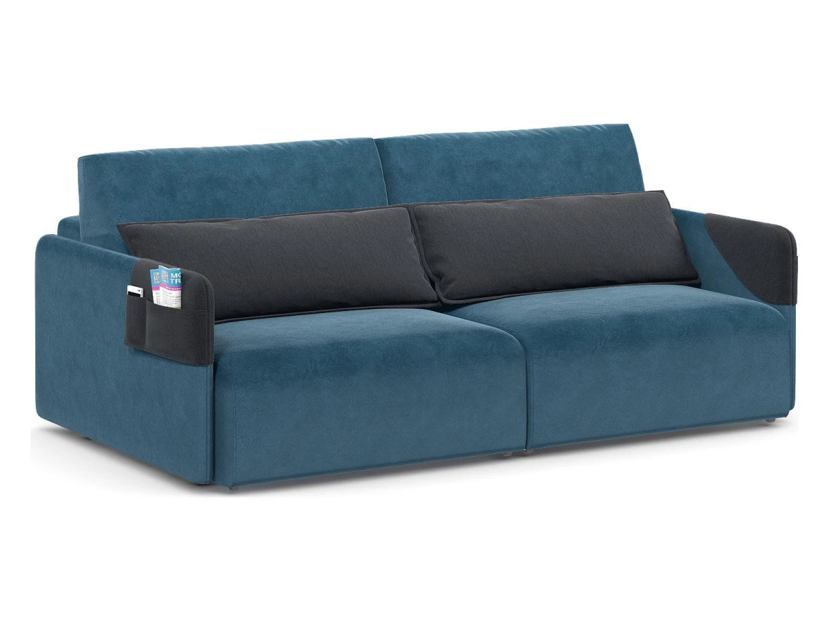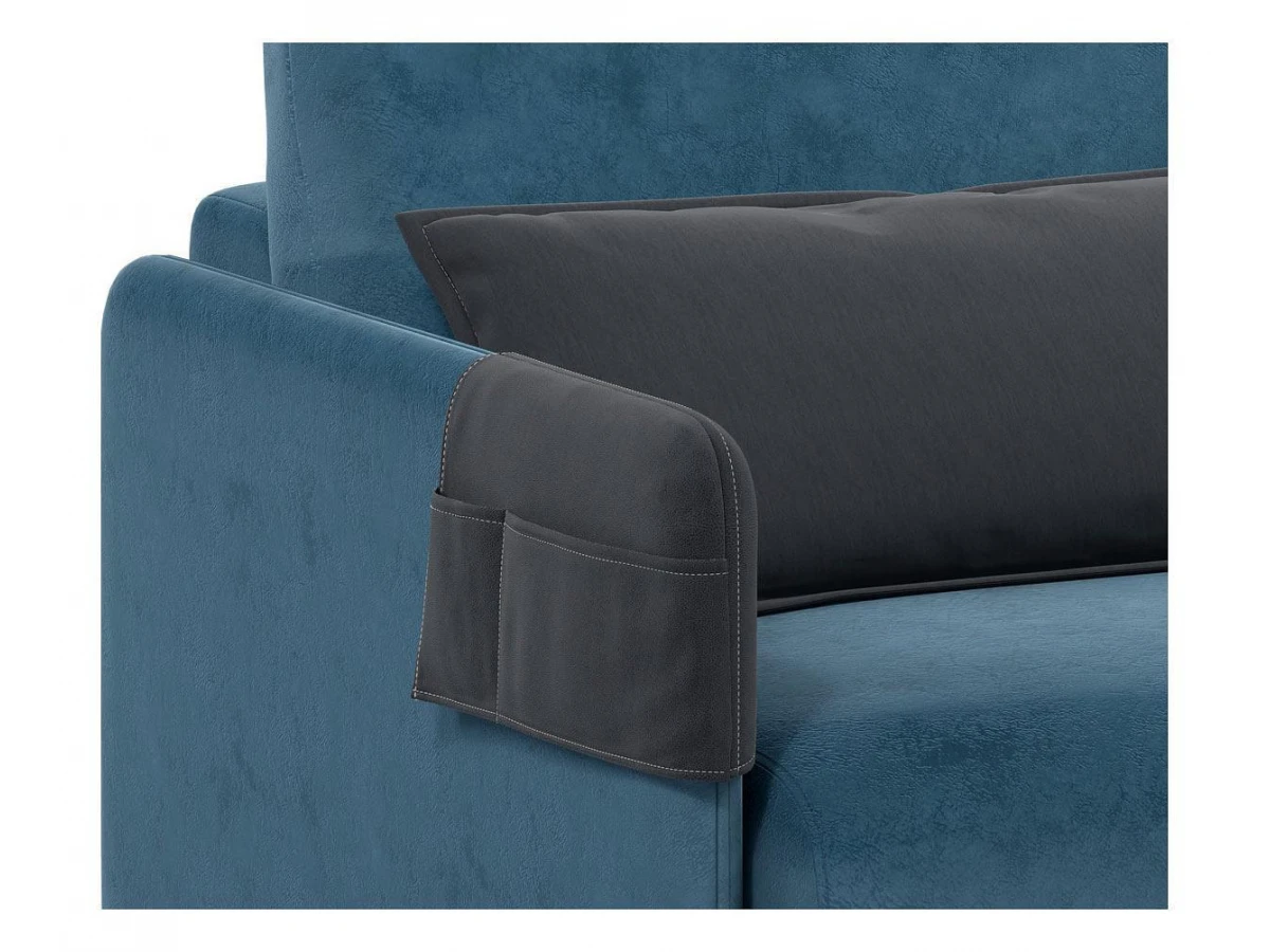 Диван оснащен функциональными карманами на подлокотниках, которые представляют собой съемные элементы. В них легко разместить пульт от телевизора или телефон. Практичные карманы служат дополнительной защитой обивочной ткани подлокотников от загрязнений. Их можно использовать в разных положениях, подстраивая под индивидуальные потребности.