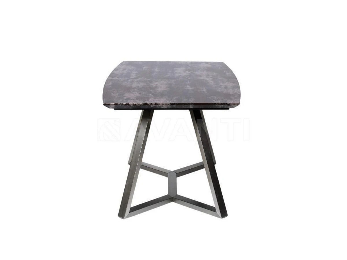 Обеденный стол SOHO хорошо впишется в столовую или гостиную в современном стиле благодаря оригинальной форме основания, выполненного из брашированной стали и лаконичной форме столешницы с необычным покрытием.