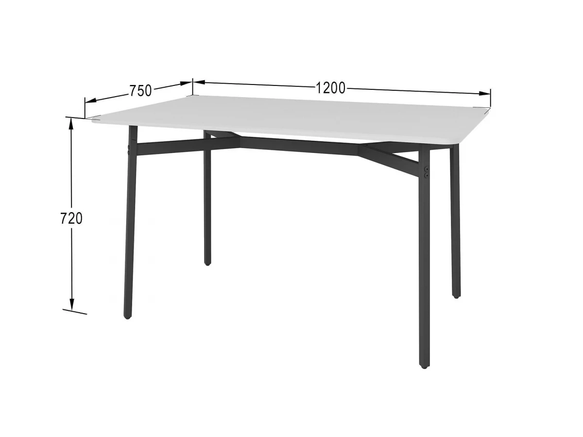 1200 мм в длину, 750 мм в ширину и 720 мм высоту. Купить стол обеденный Кросс вы можете прямо сейчас за 10440 руб.