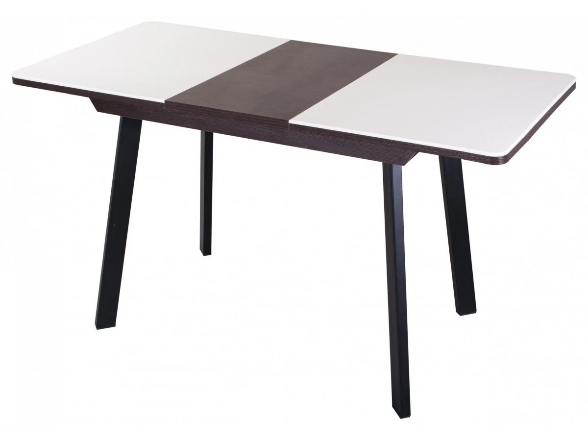 Стол Ооснащен синхронно-раздвижным механизмом раскладки. Для того, чтобы разложить стол серии Румба необходимо потянуть за любую из половинок столешницы, установить вложенную в основание между столешницами вставку, сдвинуть полукрышки до упора и закрепить специальным зажимом.