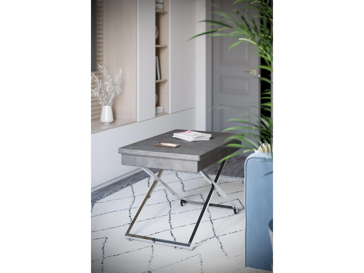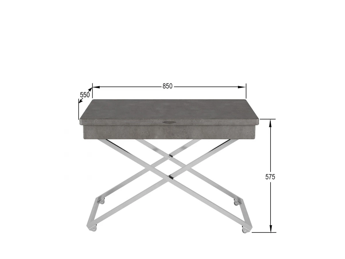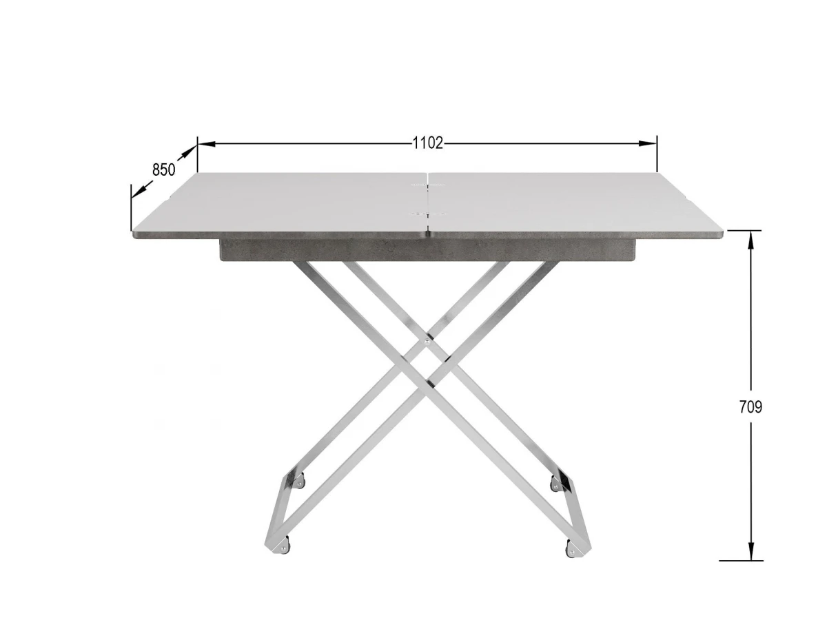 Особенностью такого предмета мебели является его способность трансформироваться: за считанные секунды можно увеличить столешницу или поменять высоту. Вы можете выбирать одно из четырех положений стола. Размеры столешницы в сложенном состоянии 850х550 мм, в разложенном-1102х850 мм. По высоте стол имеет два положения: 560 мм и 720 мм.