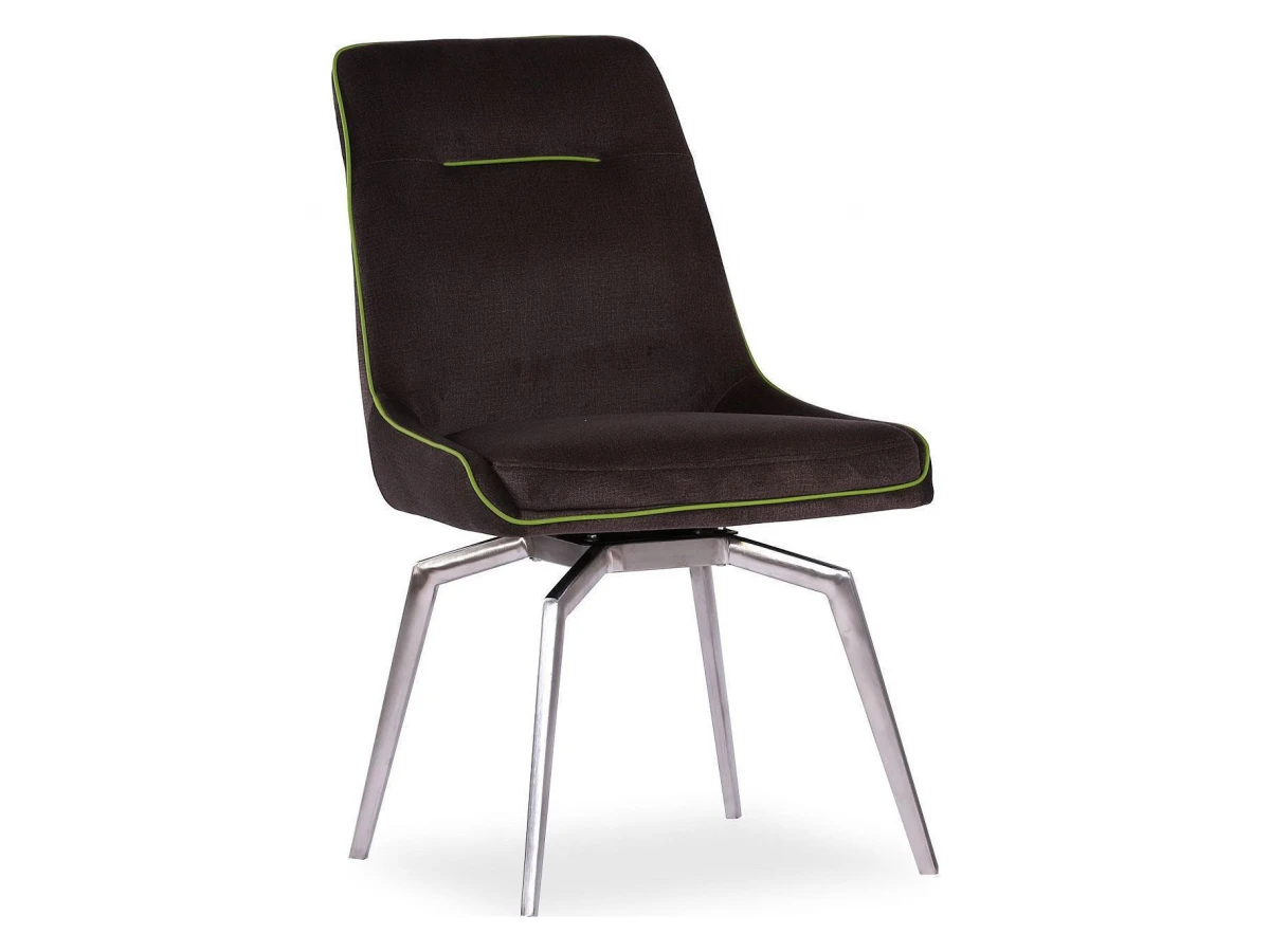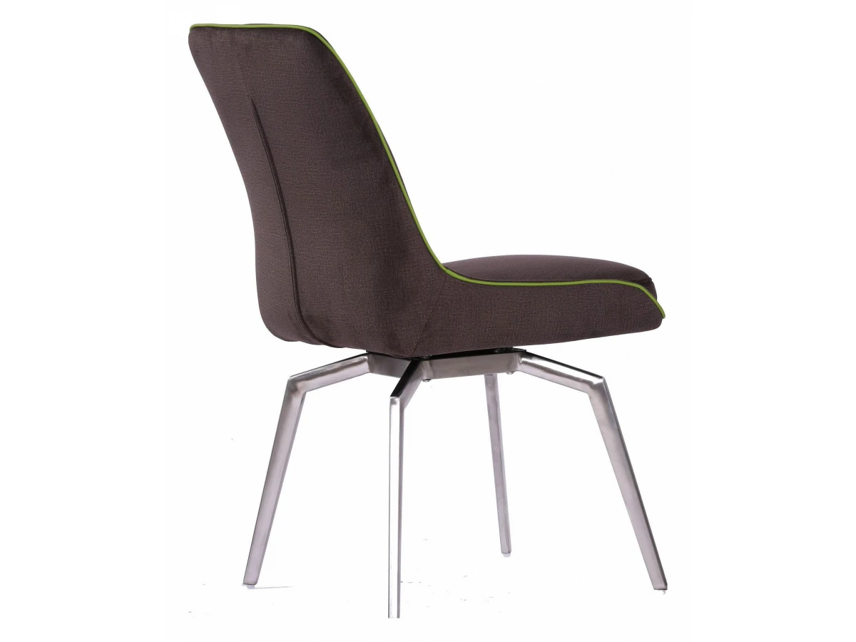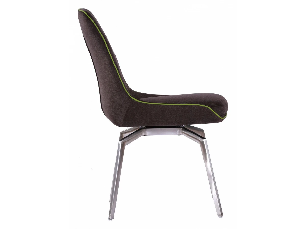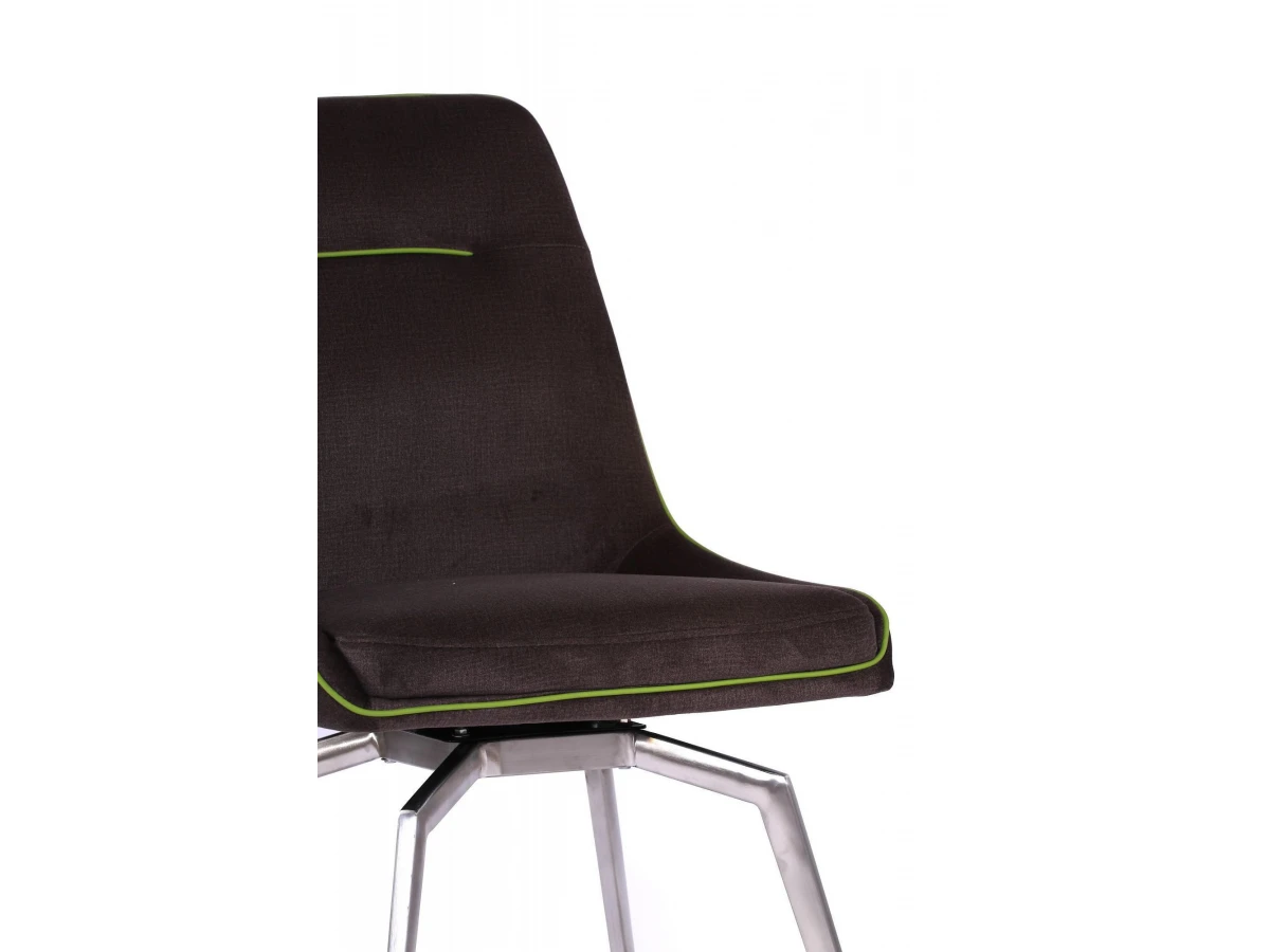 Каркас стула Forum выполнен из металла и хрома, обивка выполнена из ткани, кант из экокожи зеленого цвета.