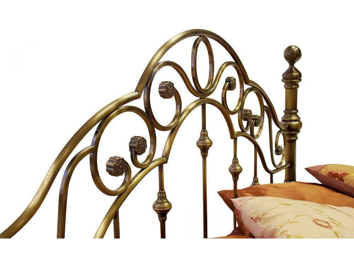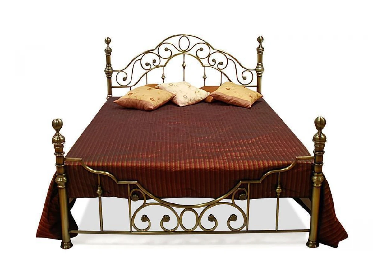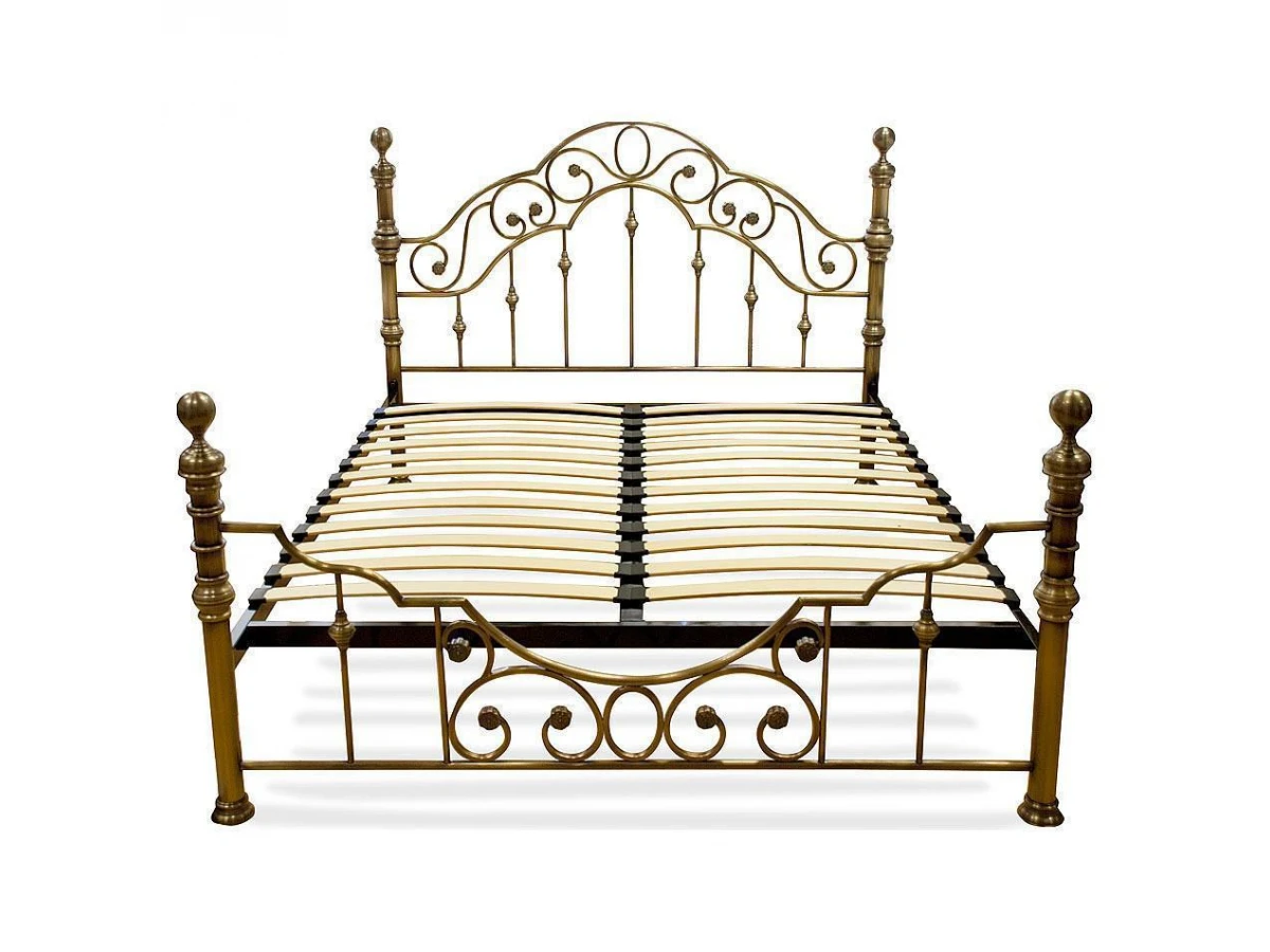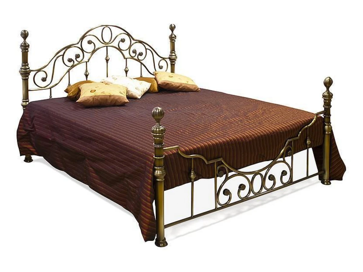 Выполнена кровать на стальном усиленном каркасе с литыми декоративными и стыковочными элементами и наконечниками.