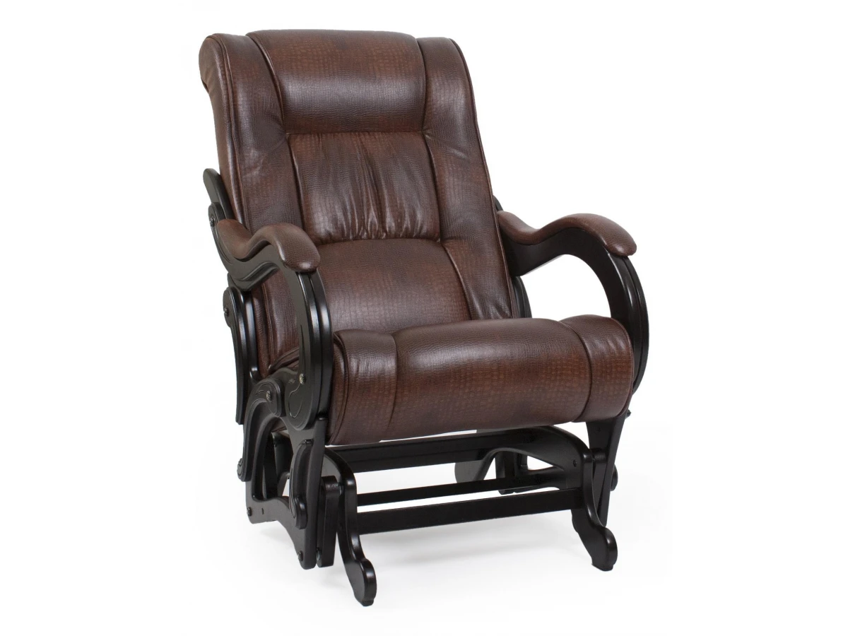 Раннее утро, плюшевый плед и чашка ароматного кофе в руках - что может сделать такой отдых еще уютнее? Конечно, кресло-качалка Модель 78 от бренда Комфорт. Габариты изделия позволят с удобством расположиться любому члену семьи (690Х980 мм, выступ равен 1000 мм), при этом допустимая нагрузка в килограммах 150. Глянцевый корпус изготовлен из практичного и износостойкого материала (березовая фанера в оттенке «венге») и прекрасно сочетается с обивкой (экокожа, цвет «коричневый Antik сrocodile»). Желаем приятных покупок!