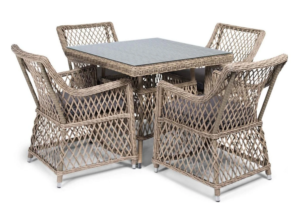 Подушки выполнены из водостойкой полиэфирной ткани для защиты мебели от дождя и солнца.