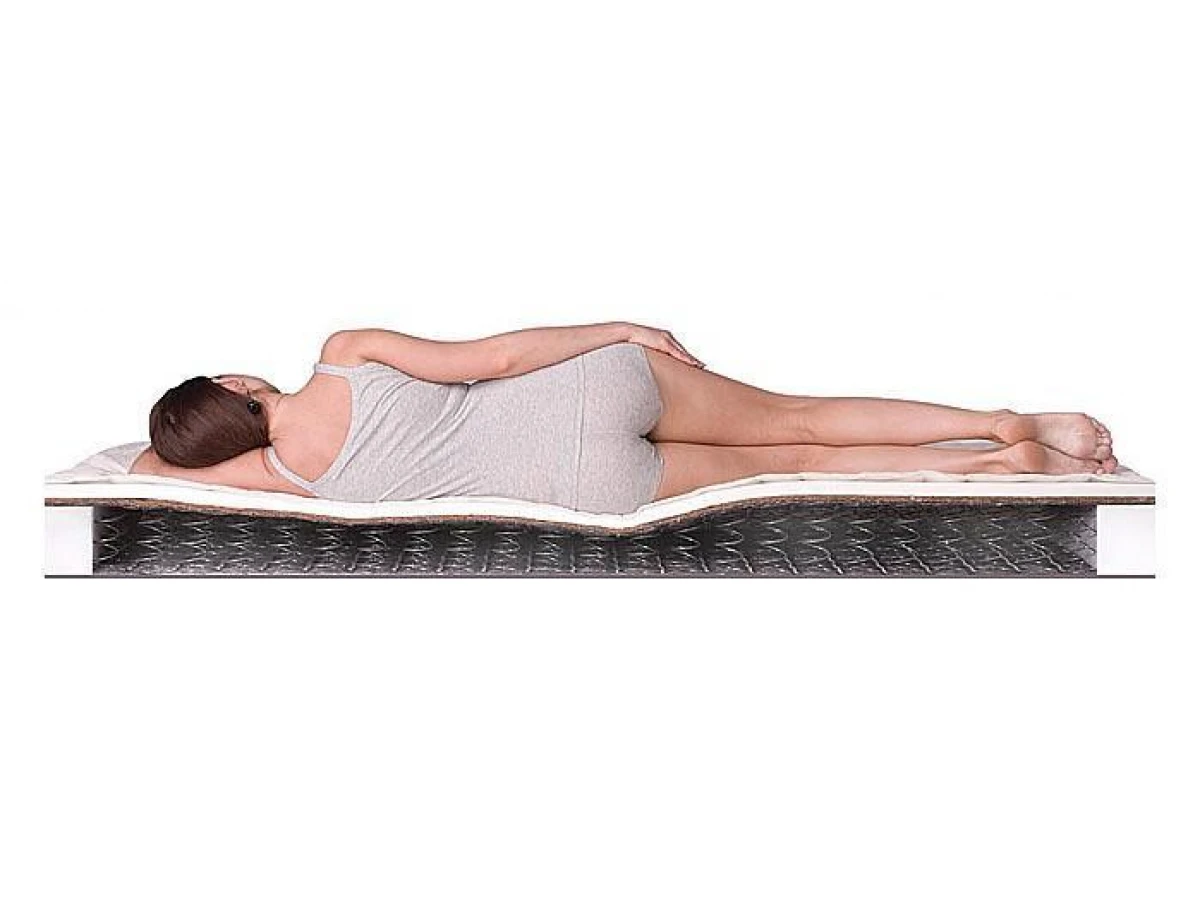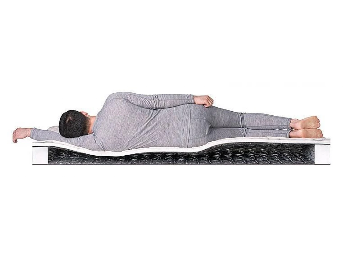Данная модель смонтирована на классическом пружинном блоке Bonnel из трёх наполнителей разной степени жёсткости. Сторона А – наполнитель из эластичной пены обладает средним уровнем анатомичности, то есть принимает форму лежащего на нём тела. Сторона Б – сразу два наполнителя: внутренний из кокоса и внешний из эластичной пены, обеспечивает комфортную поддержку позвоночника и сбалансированное распределение массы тела до 120 кг.