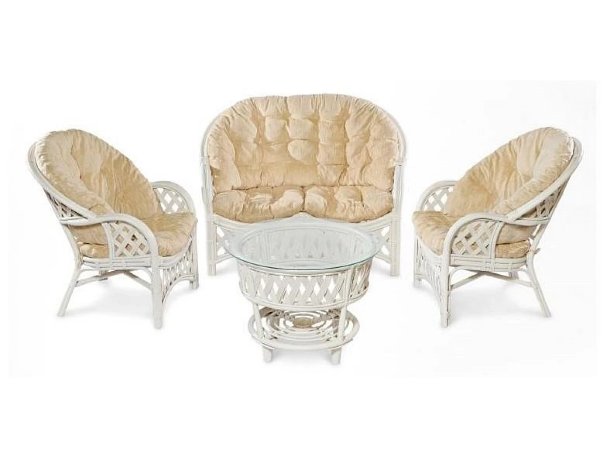 В комплектацию входят подушки на сиденье и спинку из плотной.