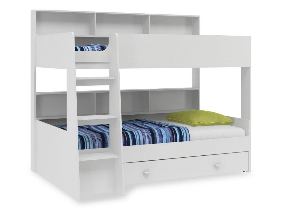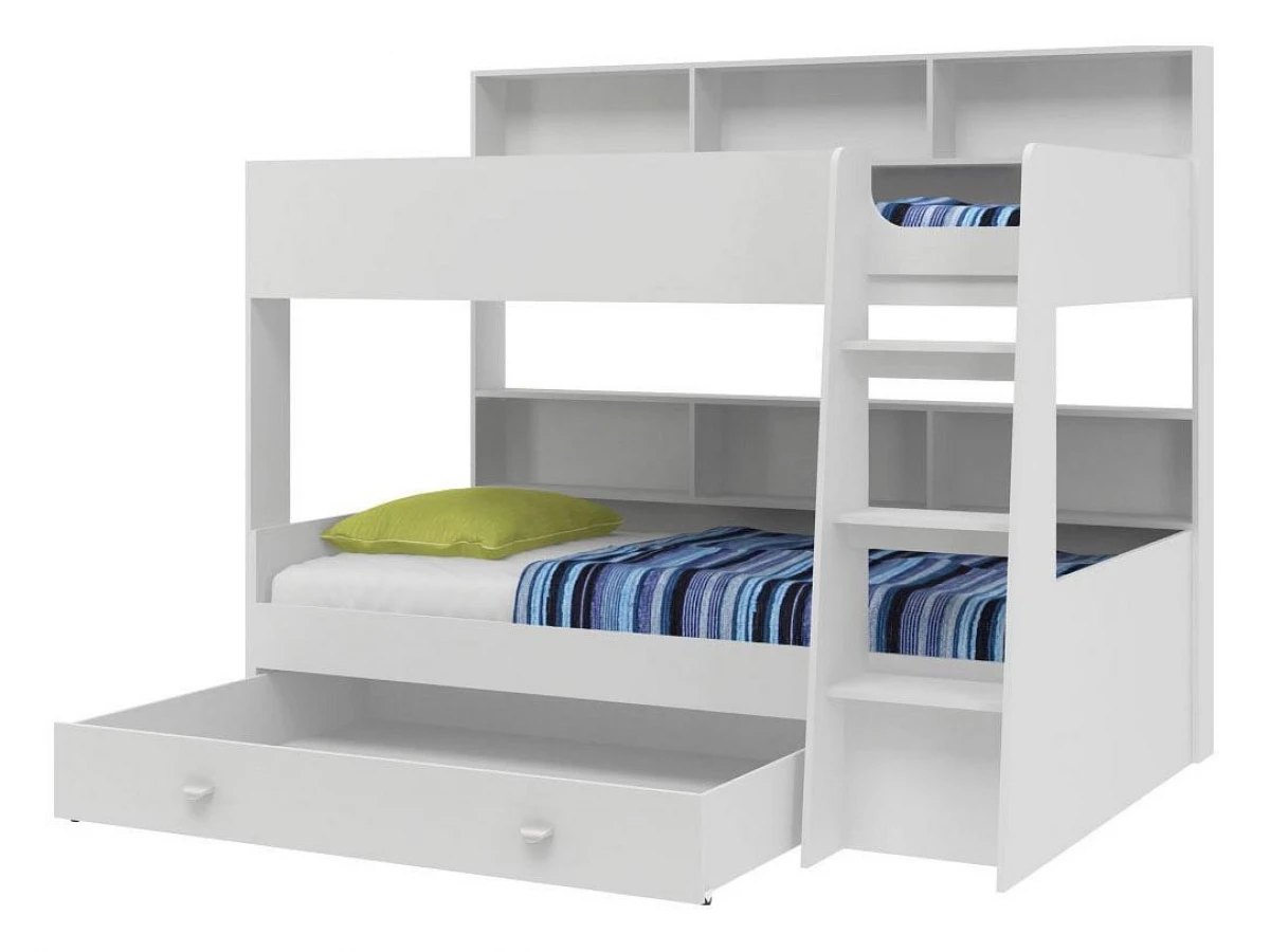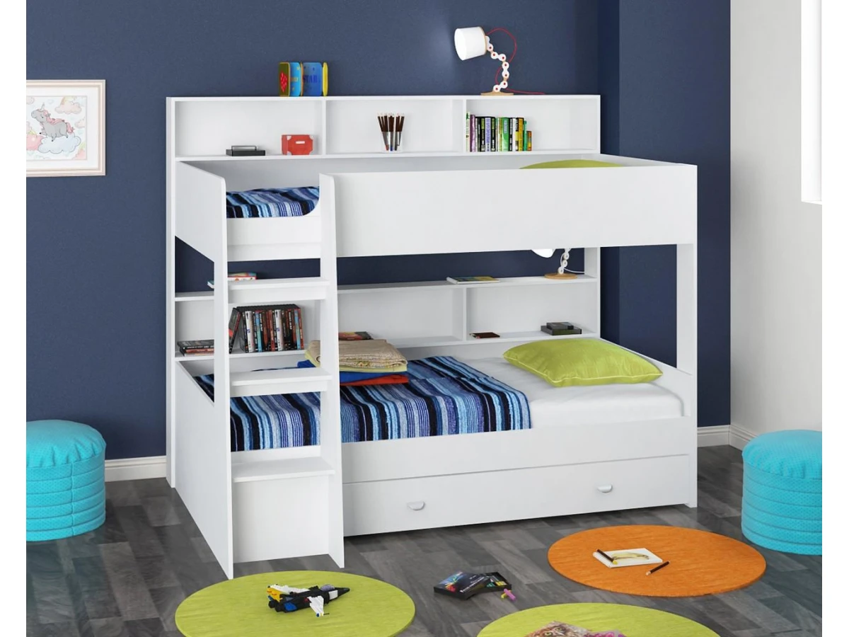Кровать произведена из экологически чистой ламинированной плиты, используется немецкая фурнитура. Конструкция практичная и крепкая. Безопасность использования обеспечивается высоким защитным бортиком и удобной лестницей не имеющей аналогов на рынке.