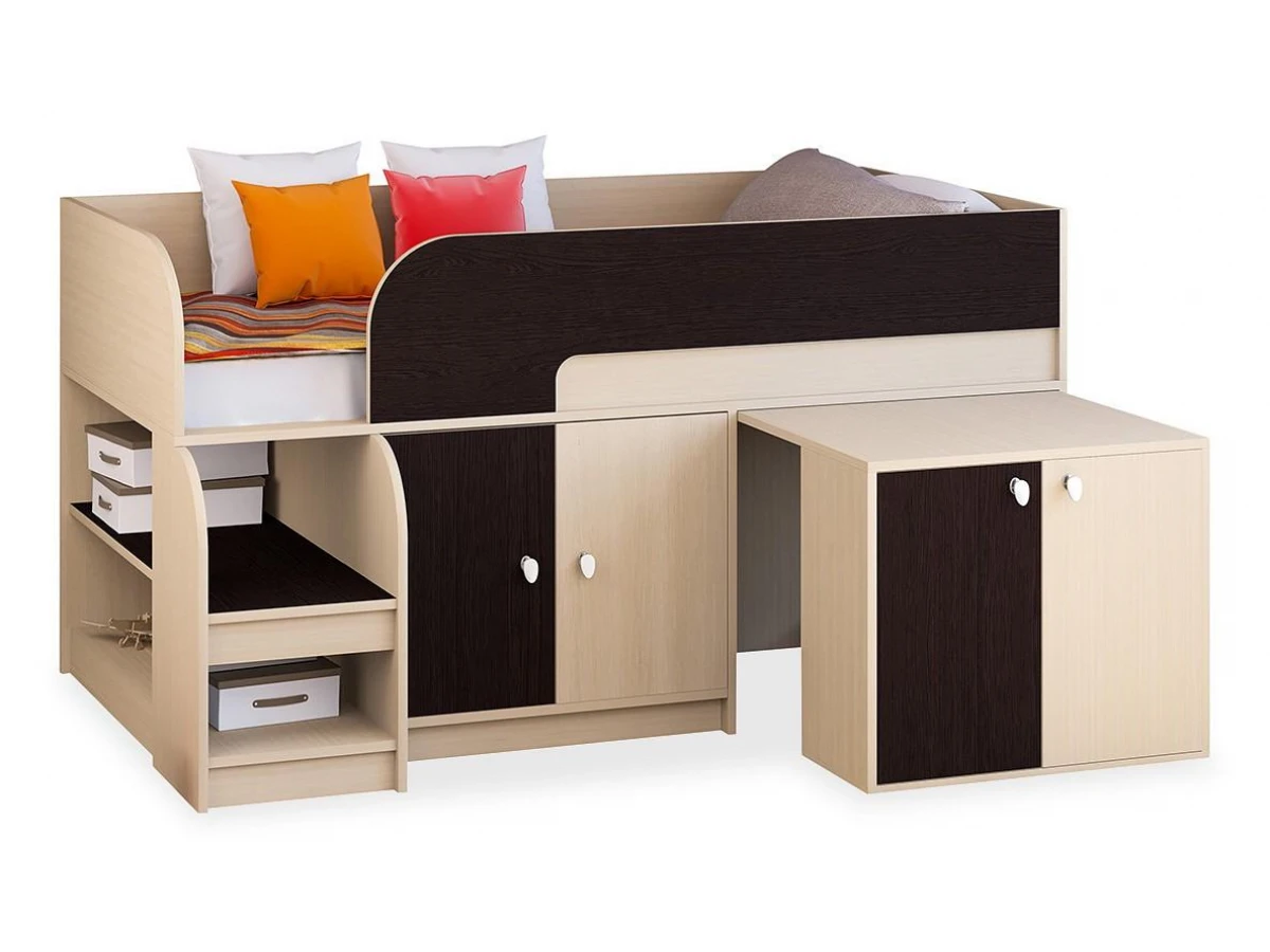 Ваш ребенок подрос и наступила пора обновить мебель в детской комнате? Набор для детской Астра 9/8 RVM_ASTRA9-V8-1-7 – отличное решение, которое придется по душе не только вам, но и будущему маленькому хозяину или хозяйке. Изделие создано известным брендом РВ-Мебель (Россия) и входит в серию «Астра 9/8». Эффектный матовый корпус оттенка венге, дуб молочный смотрится изысканно и изящно, гармонично дополняя фасад, изготовленный из практичного и оптимального для детской материала (ЛДСП Е1). Перед приобретением новой кровати рекомендуем тщательно замерить свободную площадь в комнате, чтобы кровать оптимально подошла по размерам (900 мм в высоту, 1632 мм в ширину и (уточните актуальную информацию у нашего консультанта) мм в длину), а также подобрать матрас 1600x800 мм. В комплект входит основание настил из ЛДСП;