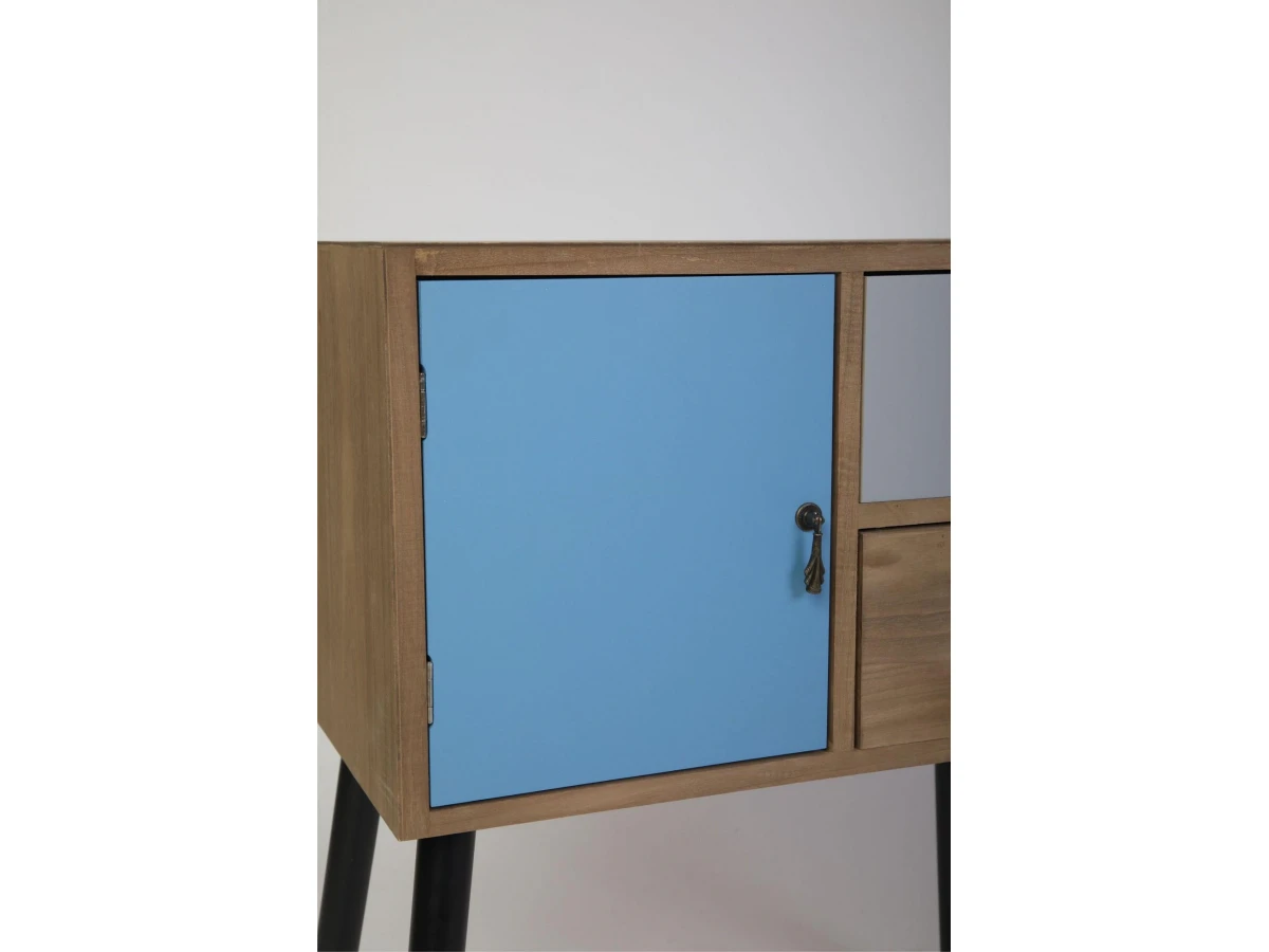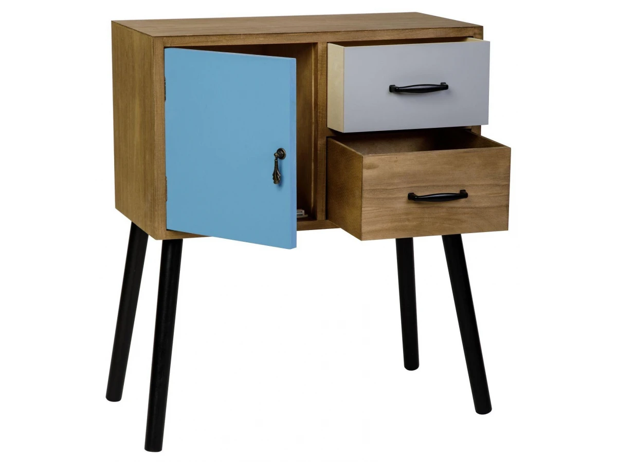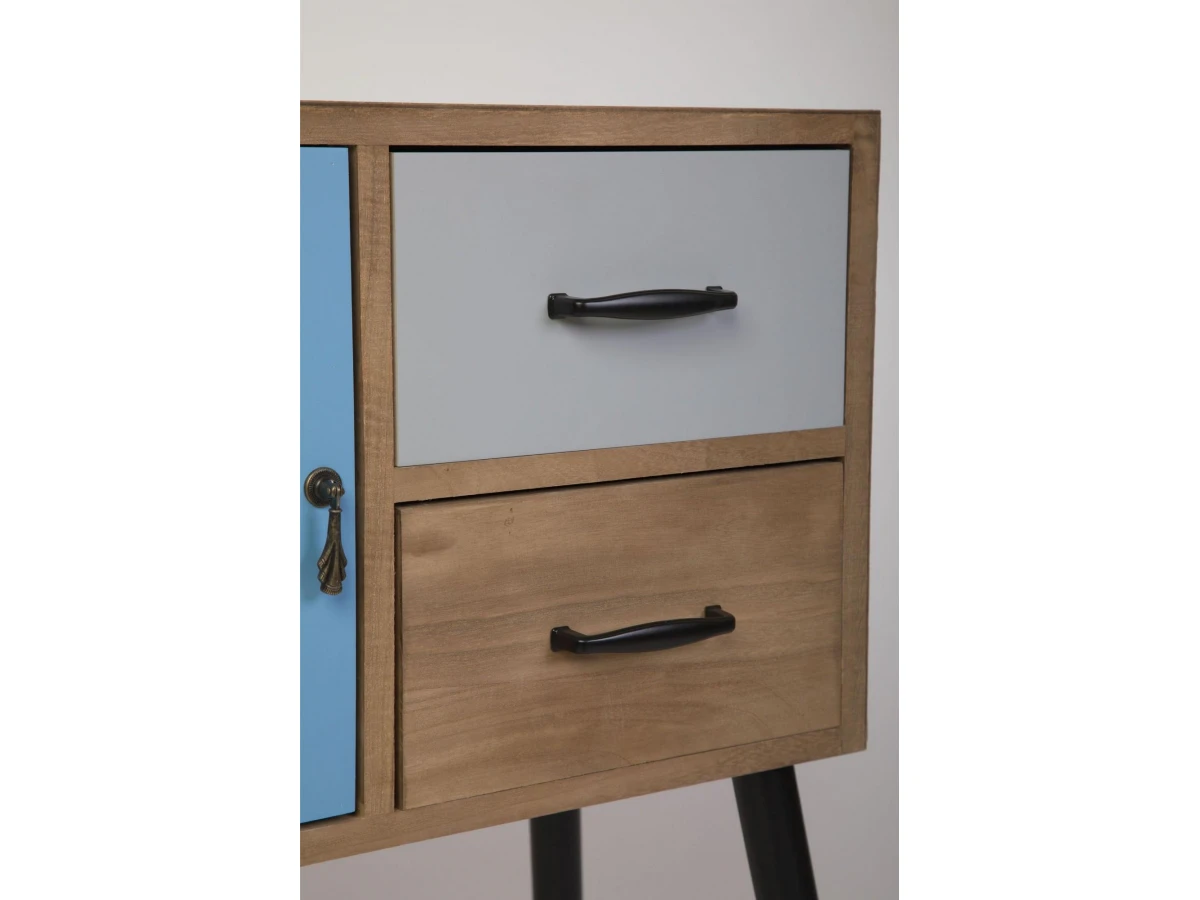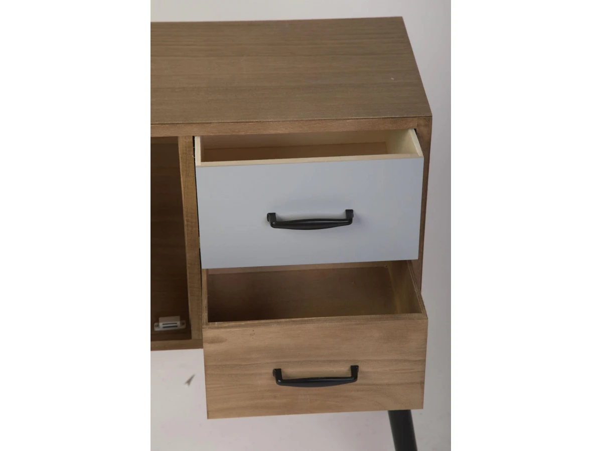 Корпус, ножки и ящики изготовлены из дерева (павловния войлочная), окрашены. В комплекте крепления для сборки.